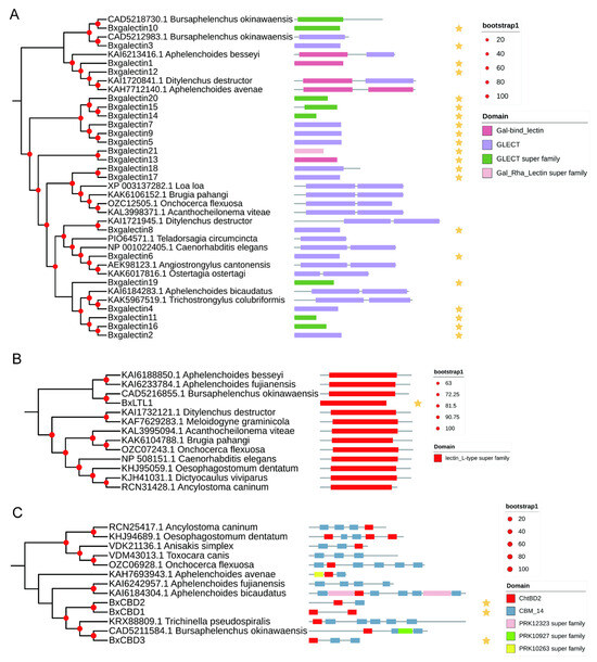 - Bauters, L.; Naalden, D.; Gheysen, G. The Distribution of Lectins across the Phylum Nematoda: A Genome-Wide Search. Int. J. Mol. Sci. 2017, 18, 91. [Google Scholar] [CrossRef] [PubMed]