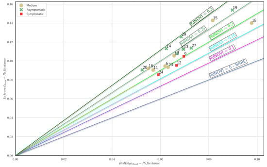 | Red-edge NDVI | Similar to NDVI but uses the red-edge band instead of the Red band, improving sensitivity to changes in canopy structure. | −1 to +1 | [31] | |