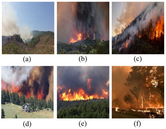 The dataset also includes fire scenes under different occlusion conditions, with approximately 40% of the images containing occlusions. These occlusions include trees, buildings, and other objects, reflecting the reality where fires may be partially obscured by surrounding structures. This further complicates the detection task. Specific example scenes are shown in Figure 7, where images of fires at different intensities and scenes are displayed, including small fires (localized, low-intensity flames), medium-intensity fires (larger areas of fire spread), and large fires (wide-scale fires with significant flame and smoke coverage). These scenes illustrate the characteristics of fires at varying intensities and showcase the detection challenges in complex environments, such as occlusions by trees, buildings, etc. By including such scenes, the dataset effectively simulates and evaluates the robustness of fire detection models under different fire intensities, particularly in the presence of occlusions, fire spread, and complex backgrounds. In constructing the dataset, we aimed to provide researchers with a challenging fire detection task, particularly in evaluating the robustness of detection models under complex environmental interference and occlusion issues. As the dataset continues to be refined, we plan to release the FSDD dataset publicly once it has been further improved, along with detailed usage documentation. We will continuously refine the dataset based on real-world feedback to ensure its effectiveness in supporting the development and evaluation of fire detection technologies.