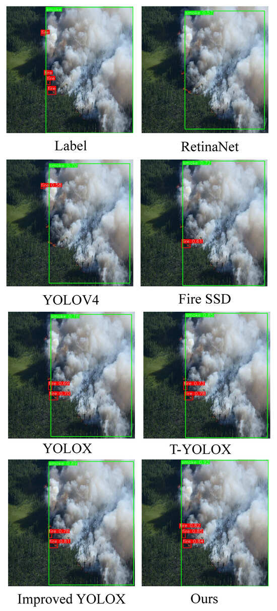 Although this research has made remarkable achievements in detection accuracy and robustness, there are still some aspects to be improved. First of all, in complex background, especially in extreme weather (such as fog, rainstorm, strong wind) and different seasonal conditions (such as autumn leaves, winter snow), the generalization ability of the model still needs to be further improved. Secondly, the current model is mainly designed for visible light images, and has limited ability to detect fires at night or under low light conditions. In addition, the model still has room for improvement when dealing with a minimal target fire source (such as a small flame that has just caught fire).