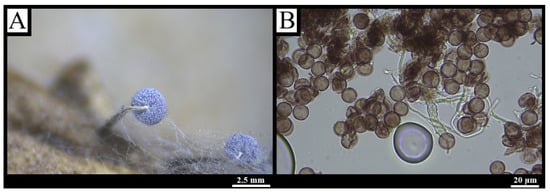 - Goodwin, D.C. Morphogenesis of the Sporangium of Comatricha. Am. J. Bot. 1961, 48, 148–154. [Google Scholar] [CrossRef]