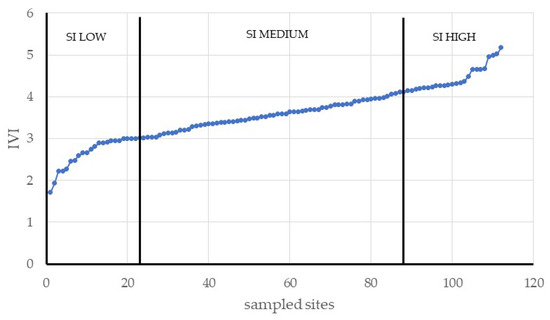 Subsequently, the IVI values were exclusively used to establish three SI categories or groups (low, medium, and high).