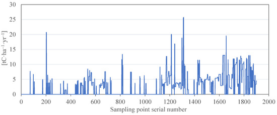 The derivation of the indicator conversion (Equations (A1)–(A6)) is shown in the Appendix A. The key variables input into i-Tree Eco for carbon sink estimation are listed in Table 5.