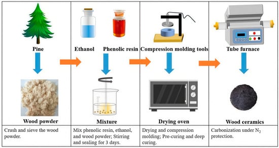 - Guo, X.; Zhang, W.; Jia, M.; Li, Y.; Wang, R.; Chen, H. Improvement of Mechanical Properties and Oxidation Resistance of Wood Ceramics and Their Use for PM2.5 Filtration. Ceram. Int. 2025, 51, 18662–18671. [Google Scholar] [CrossRef]