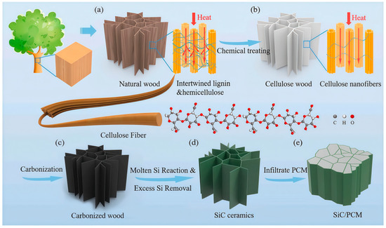 - Pei, T.; Xu, Z.; Wu, J.; He, L. Study on the Preparation and Thermal Storage Stability of Wood-Derived SiC-Based Composite Phase Change Heat Storage Material. China Ceram. 2025, 61, 17–23. [Google Scholar] [CrossRef]