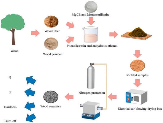- Zhang, K.H. Study on preparation of SiC wood ceramics from wood/TEOS hybrid materials. J. Chin. Ceram. Soc. 2011, 30, 55–60+68. [Google Scholar] [CrossRef]