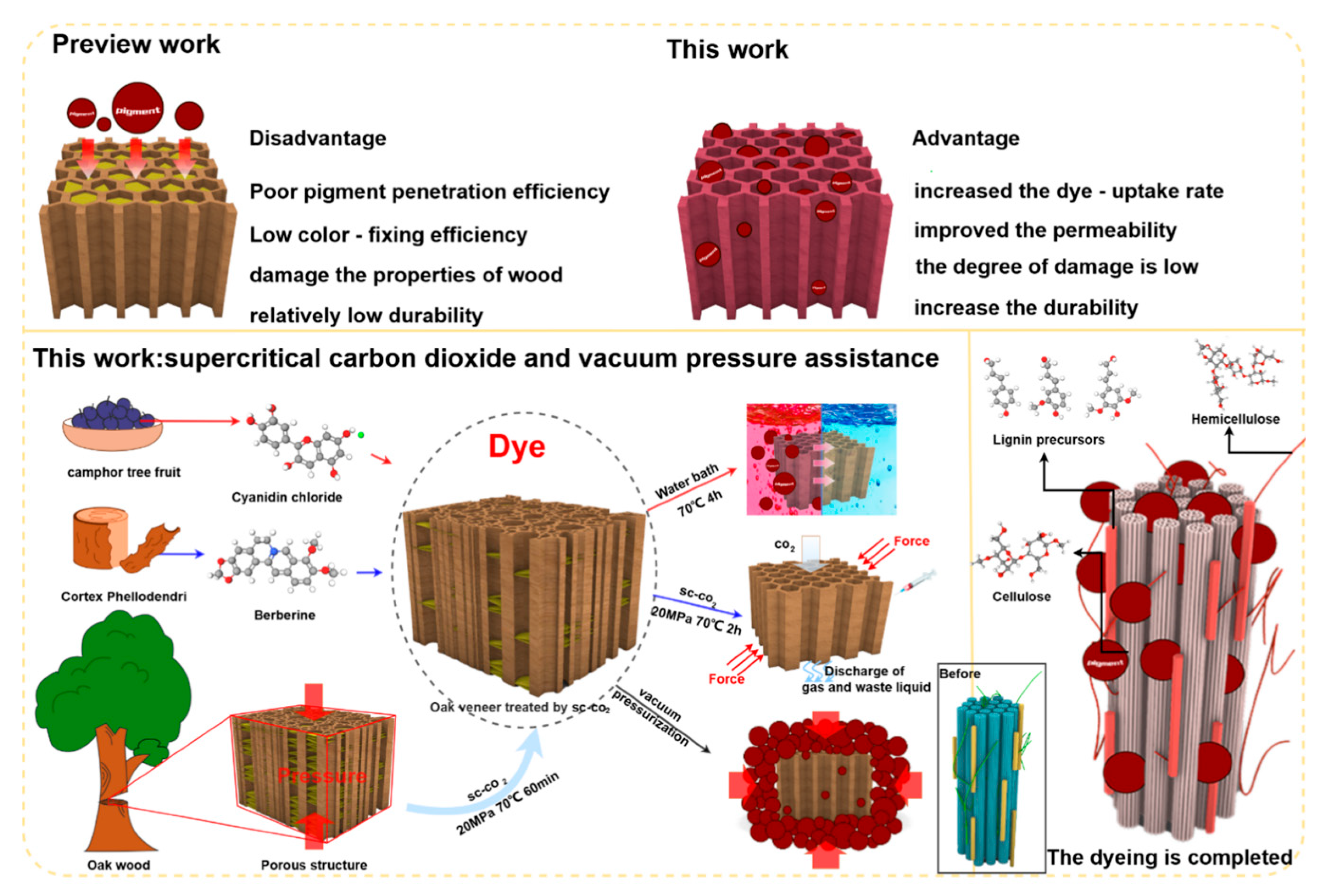 - Zhang, J.; Yang, L.; Liu, H. Green and Efficient Processing of Wood with Supercritical CO2: A Review. Appl. Sci. 2021, 11, 3929. [Google Scholar] [CrossRef]