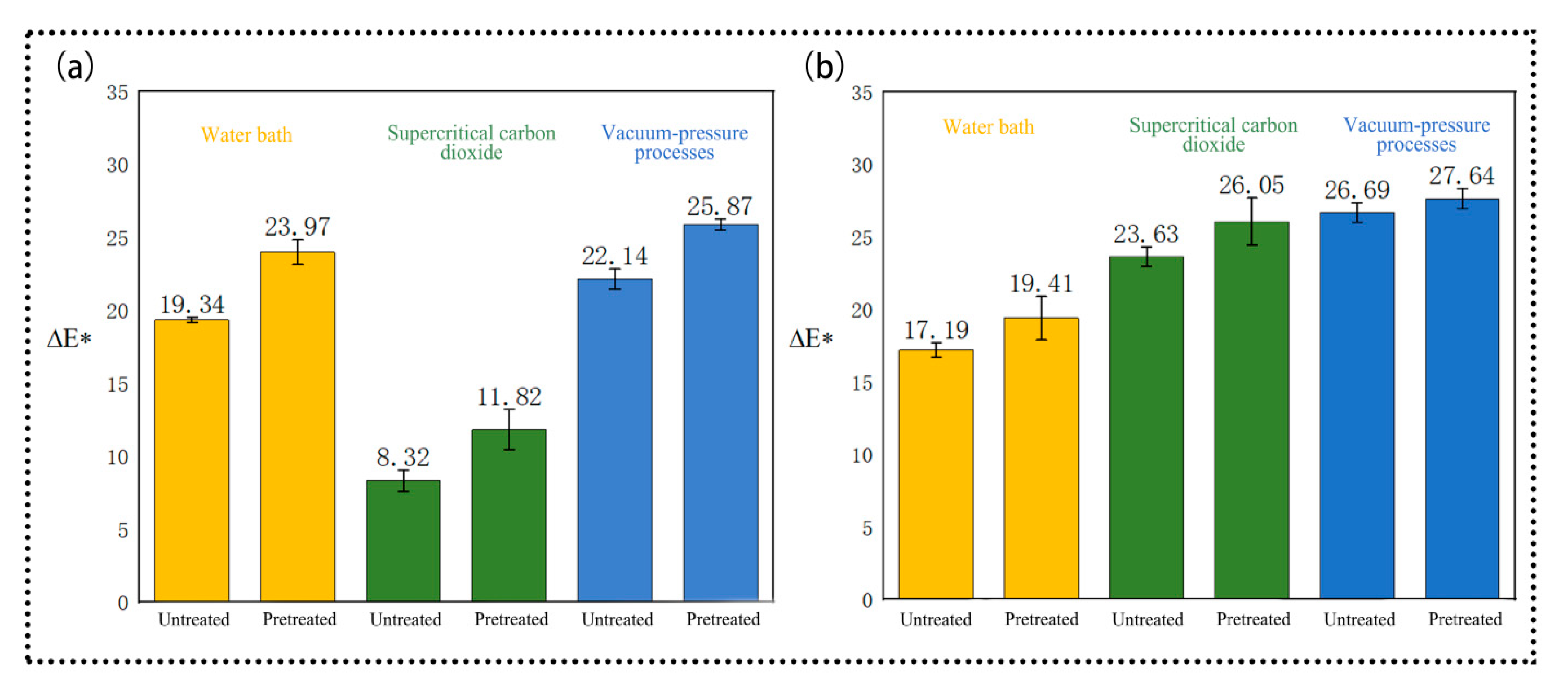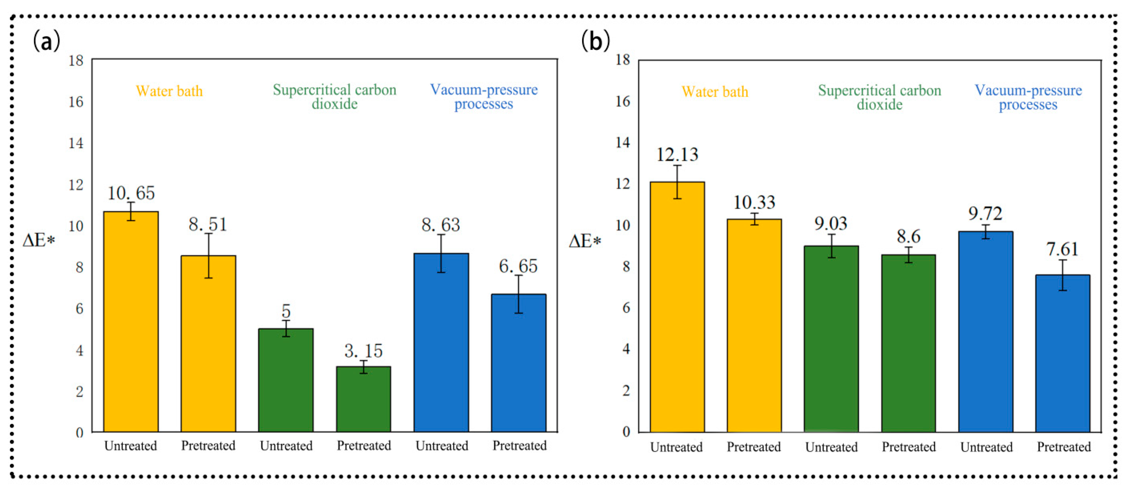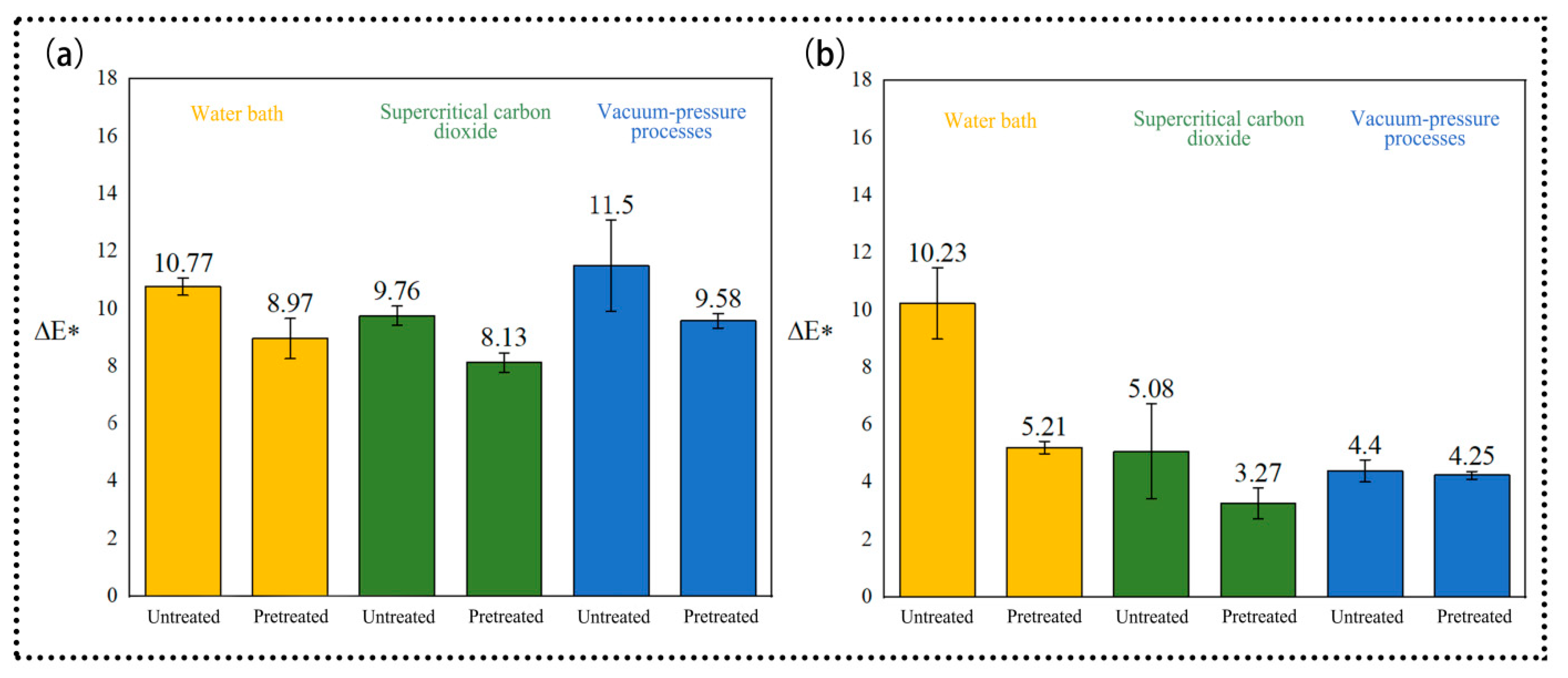 ΔL* | Pretreatment | 30.360 | 1 | 30.360 | 13.337 | 0.001 | |