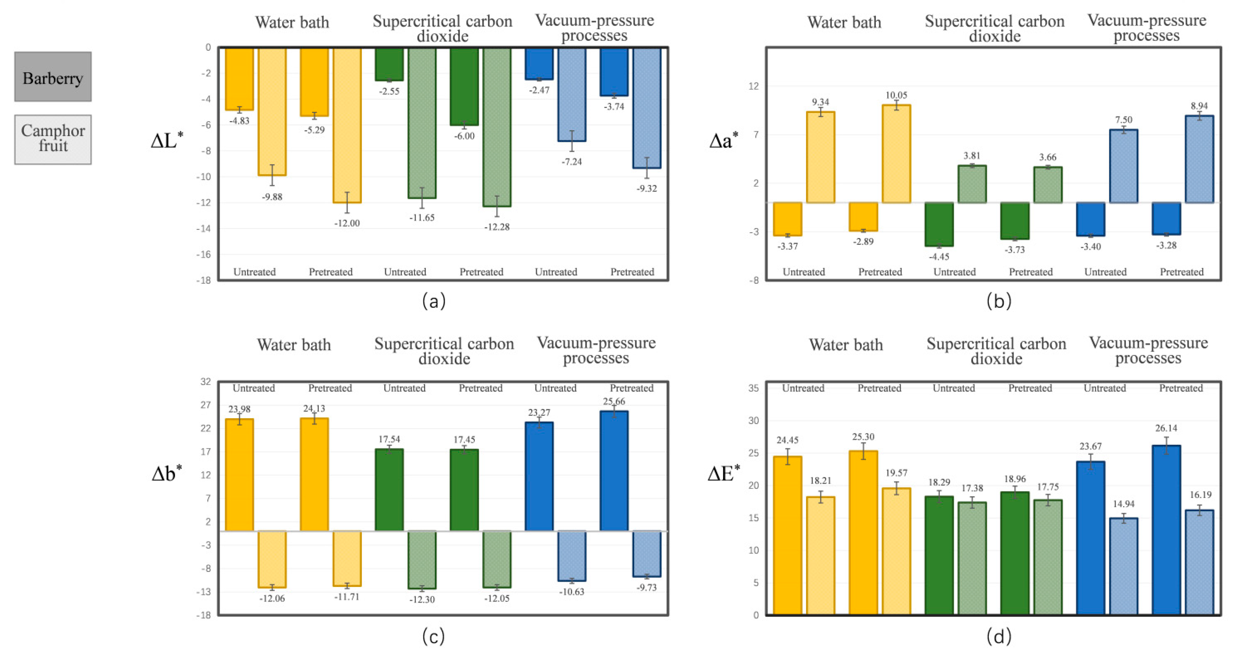 Camphor fruit | ΔE* | Pretreatment | 8.858 | 1 | 8.858 | 6.087 | 0.020 |