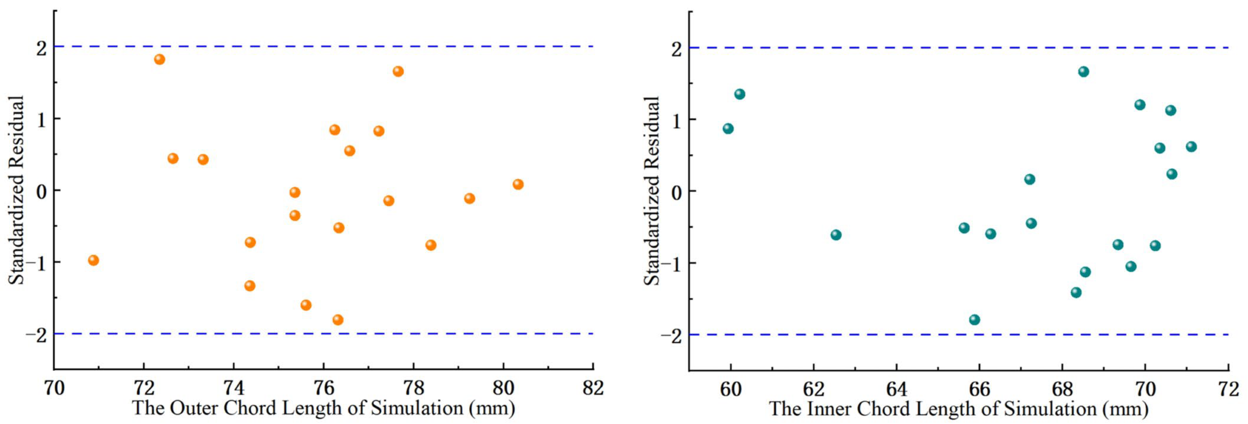Evaluation Indicator | Inner Chord Length (mm) | Outer Chord Length (mm) | ||||
