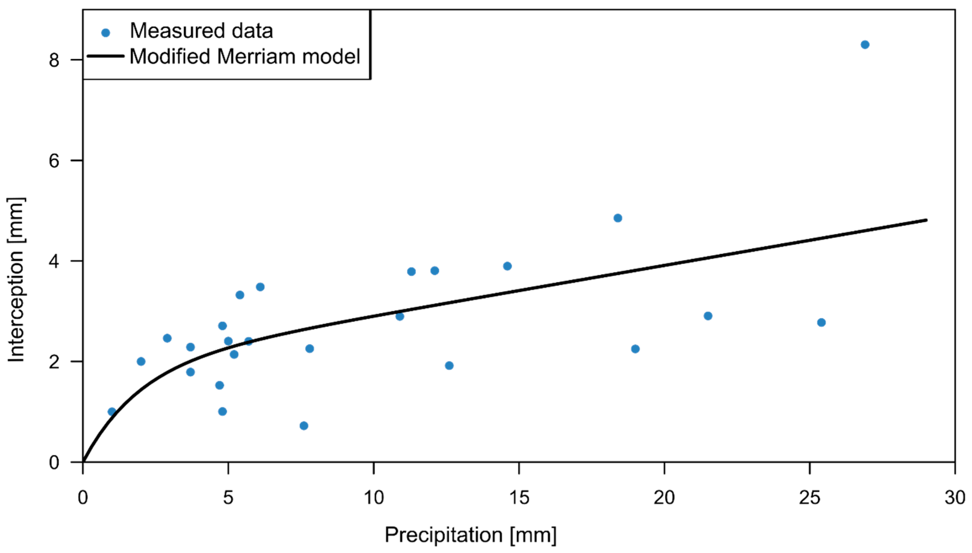 measured interception [mm] | |