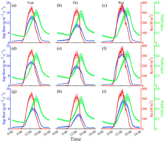 - Han, S.; Wang, Q.; Zhao, Y.; Zhai, J.; Wang, X.; Hao, Y.; Li, L.; Li, X.; Li, H.; Cao, J. Response of typical tree species sap flow to environmental factors in the hilly areas of Haihe River Basin, China. Forests 2024, 15, 294. [Google Scholar] [CrossRef]