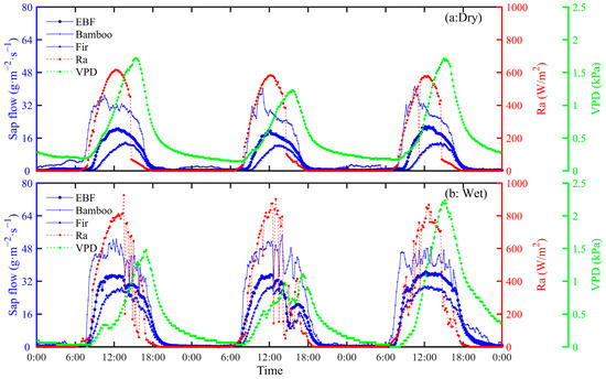 3.3. Variation of Sap Flow Under Shifting Environmental Conditions