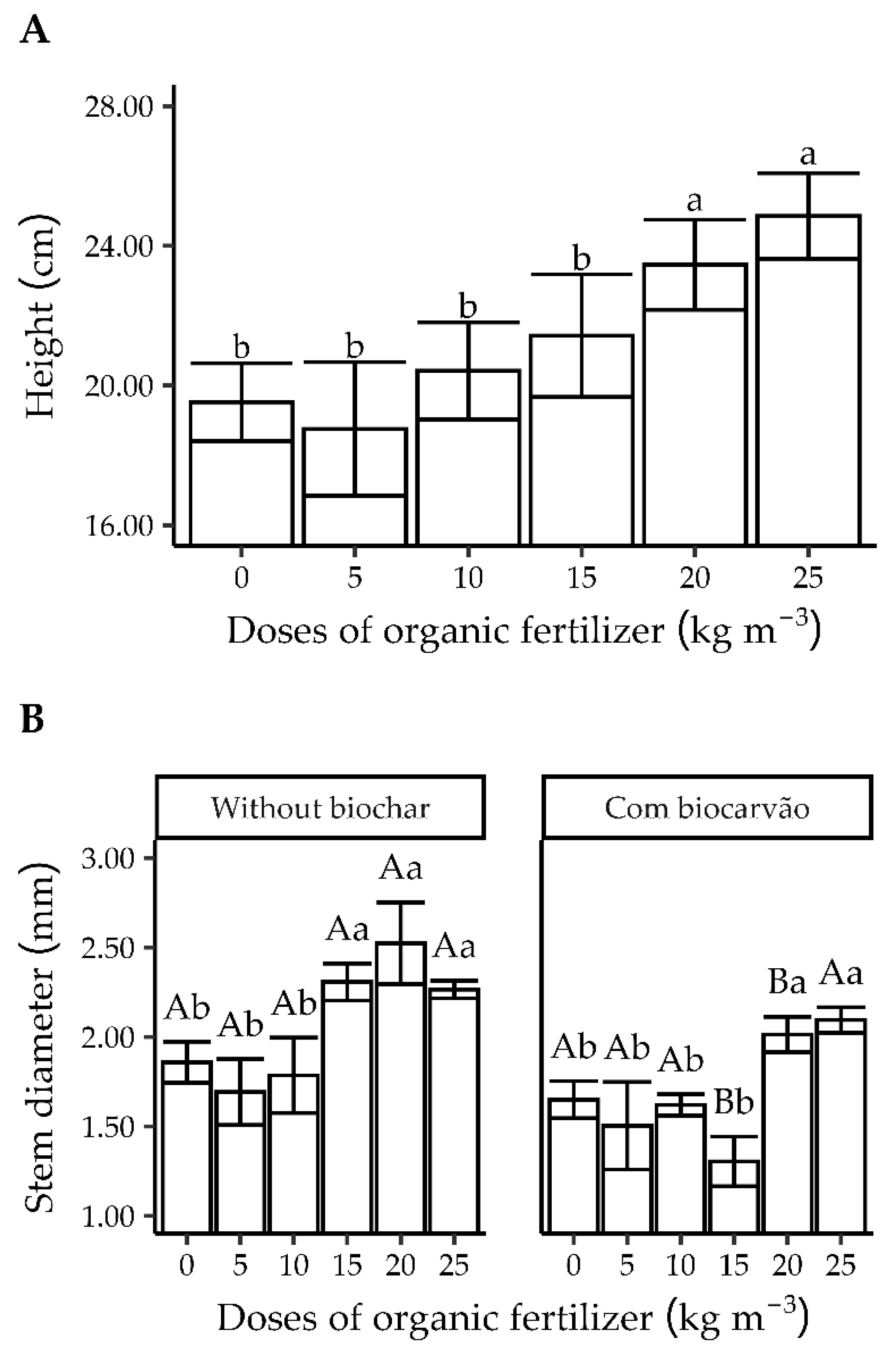 Length (cm) | Without biochar | 220.09 Ba | 320.38 Aa | 304.49 Ba | 259.79 Aa | 247.18 Aa | 264.61 Aa |