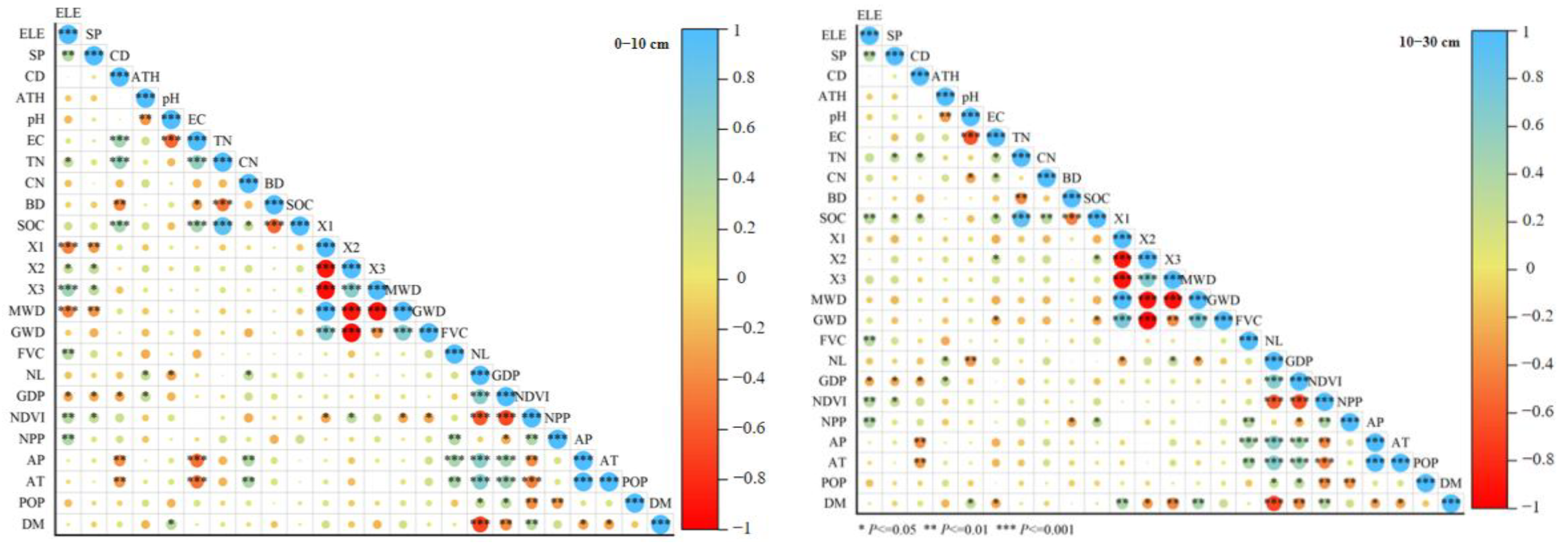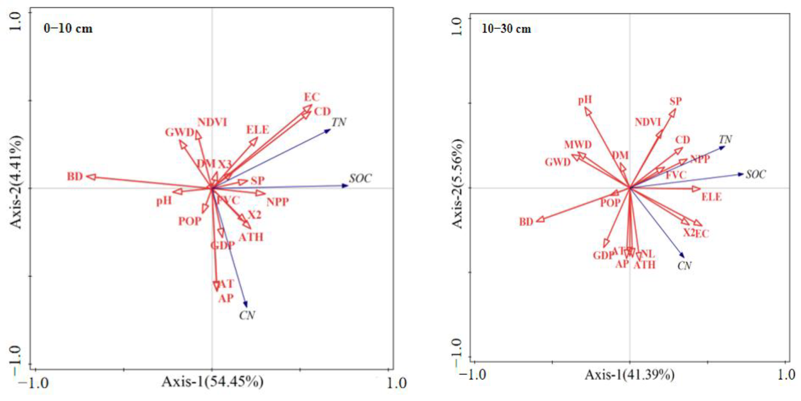 4.3. Analysis of Factors Affecting SOC, TN, and C/N