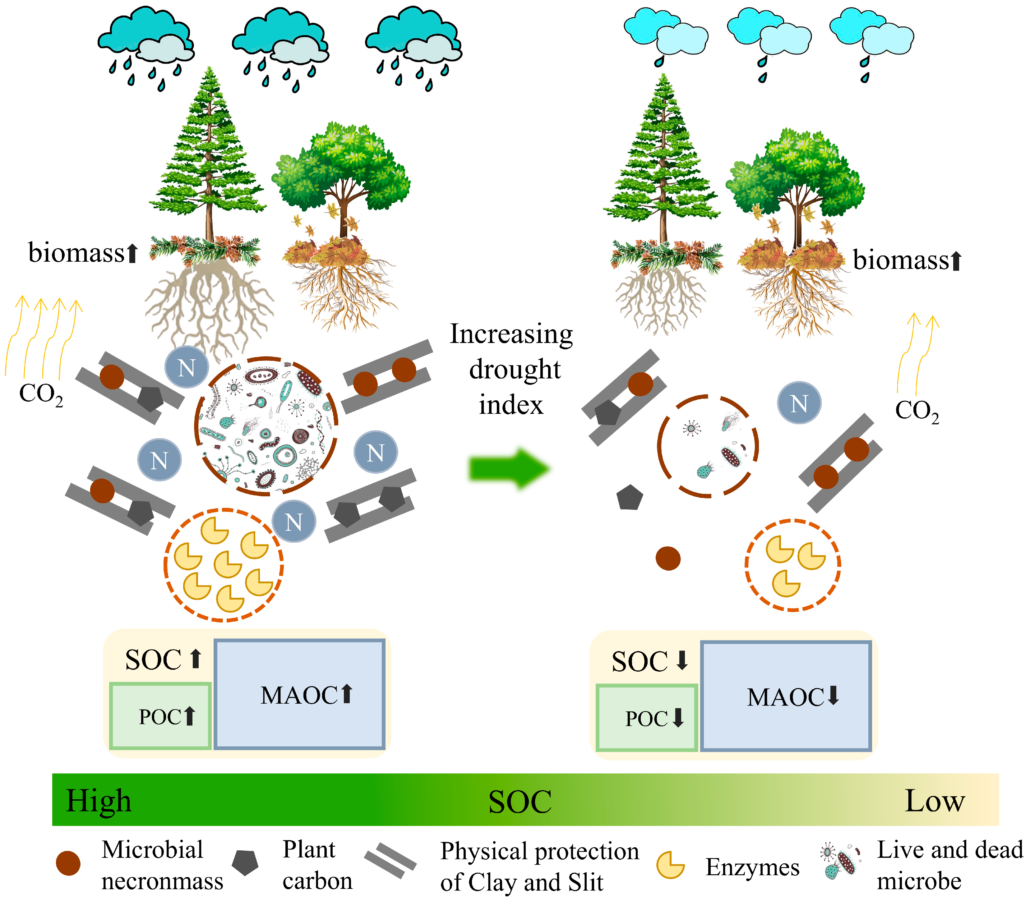 - Sokol, N.W.; Whalen, E.D.; Jilling, A.; Kallenbach, C.; Pett-Ridge, J.; Georgiou, K. Global Distribution, Formation and Fate of Mineral-associated Soil Organic Matter under a Changing Climate: A Trait-based Perspective. Funct. Ecol. 2022, 36, 1411–1429. [Google Scholar] [CrossRef]