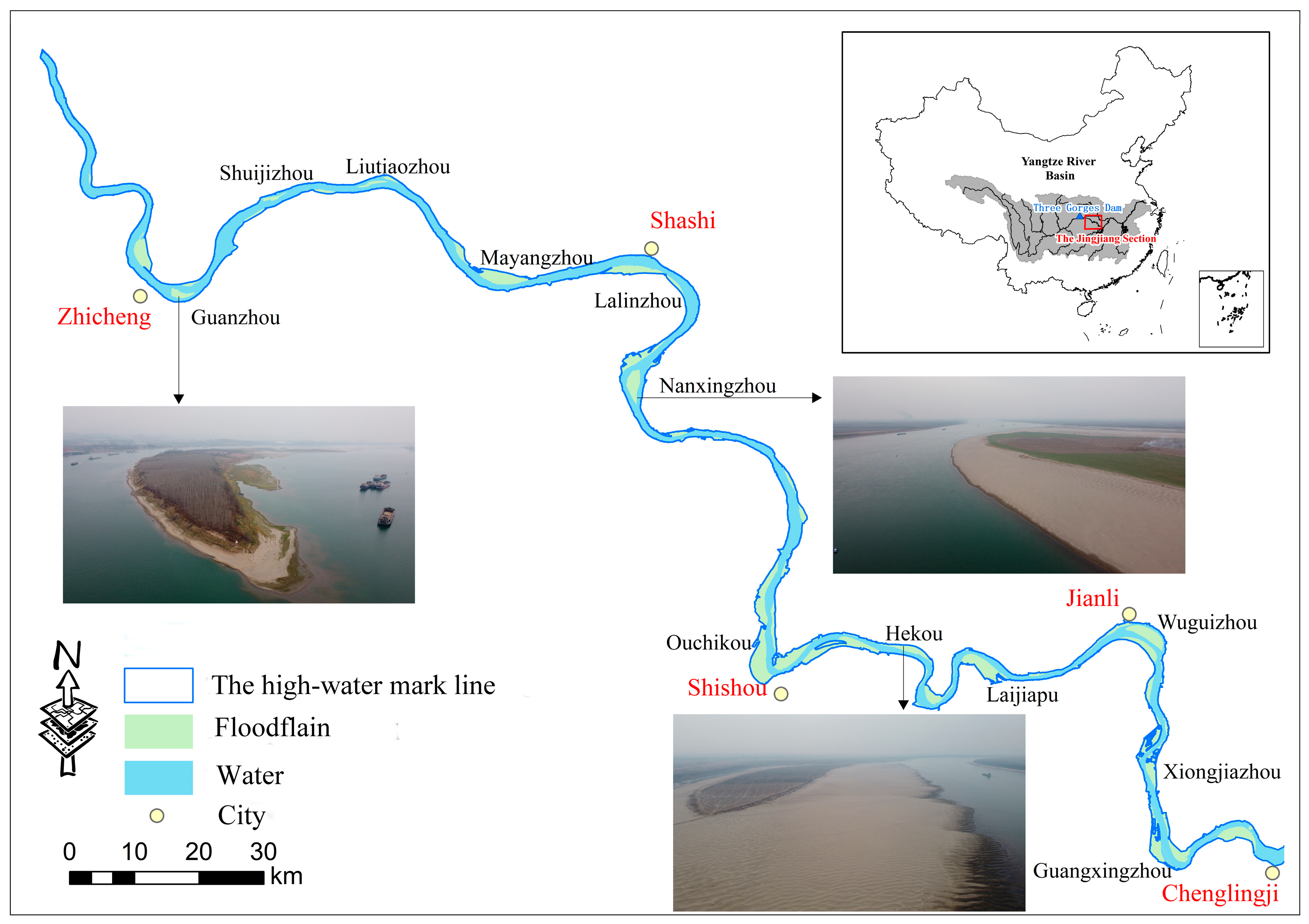 - Yang, X.; Sun, Z.; Li, Y.; Deng, J.; Xiong, H.; Li, D. Mechanisms of bar adjustments in the Jingjiang Reach of the Yangtze River in response to the operation of the Three Gorges Dam. J. Hydrol. 2023, 616, 128802. [Google Scholar] [CrossRef]
