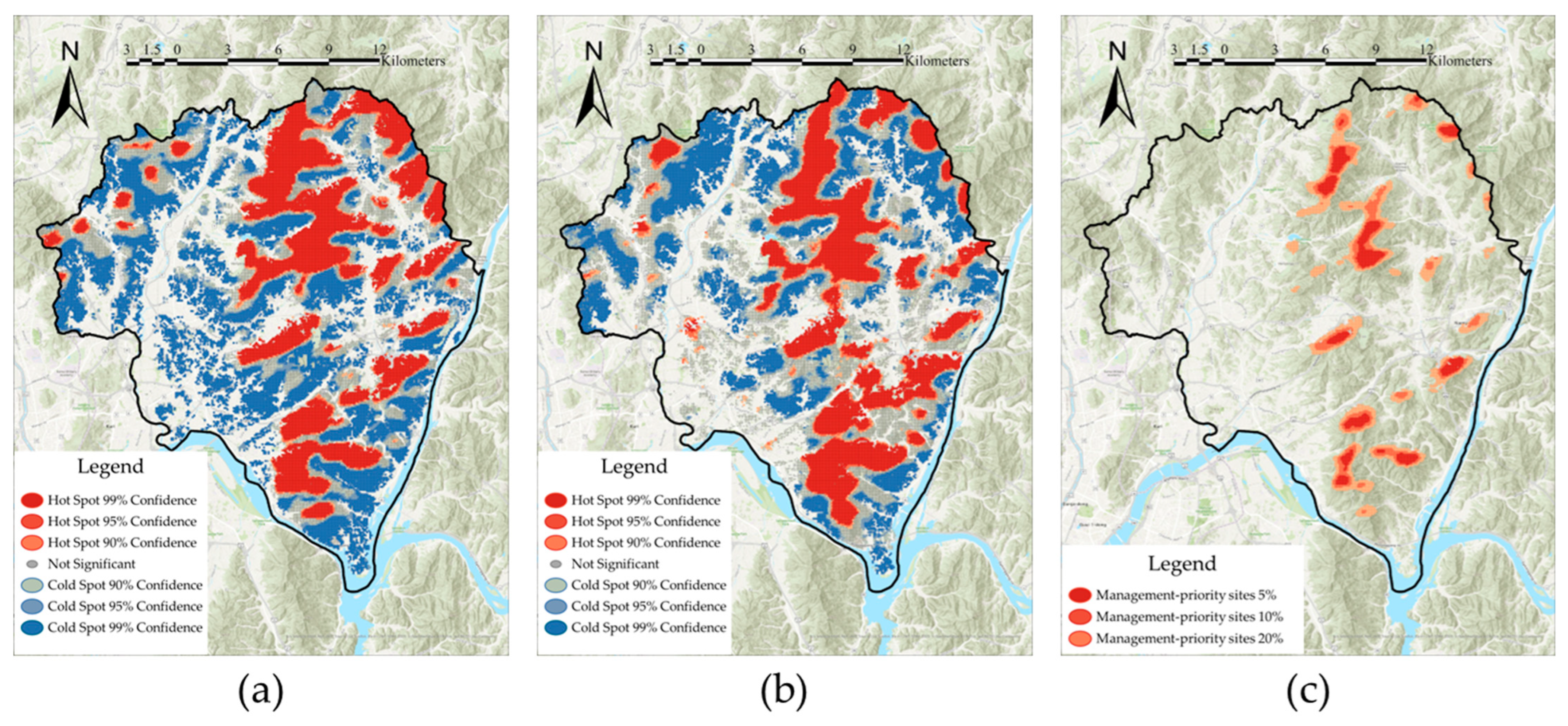 - Rossi, F.; Becker, G. Creating Forest Management Units with Hot Spot Analysis (Getis-Ord Gi*) over a Forest Affected by Mixed-Severity Fires. Aust. For. 2019, 82, 166–175. [Google Scholar] [CrossRef]