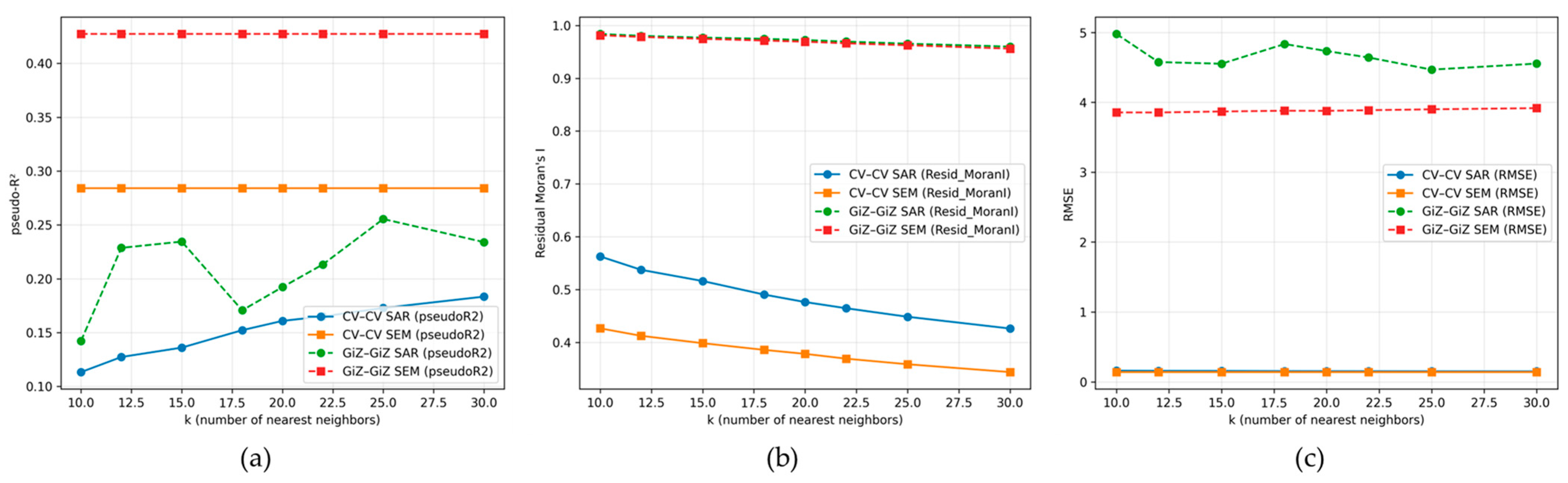 - Anselin, L. Model Validation in Spatial Econometrics: A Review and Evaluation of Alternative Approaches. Int. Reg. Sci. Rev. 1988, 11, 279–316. [Google Scholar] [CrossRef]