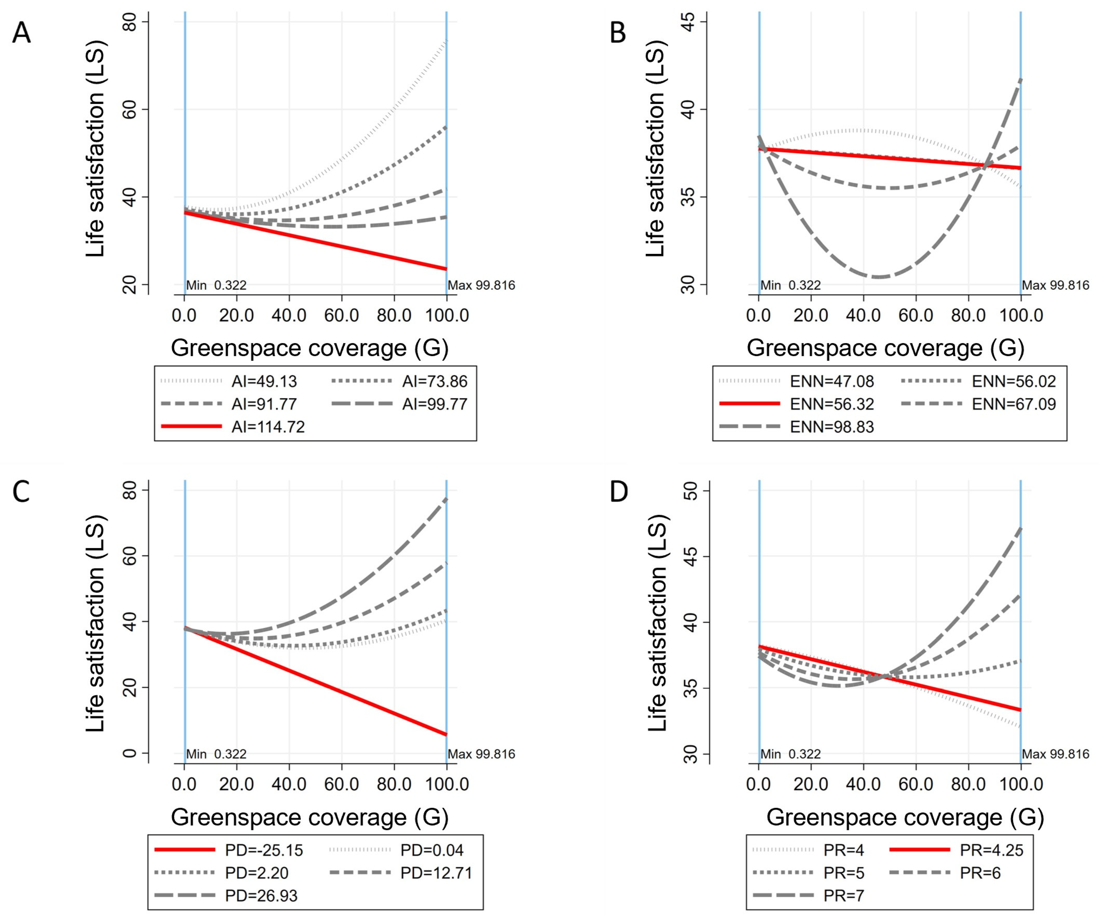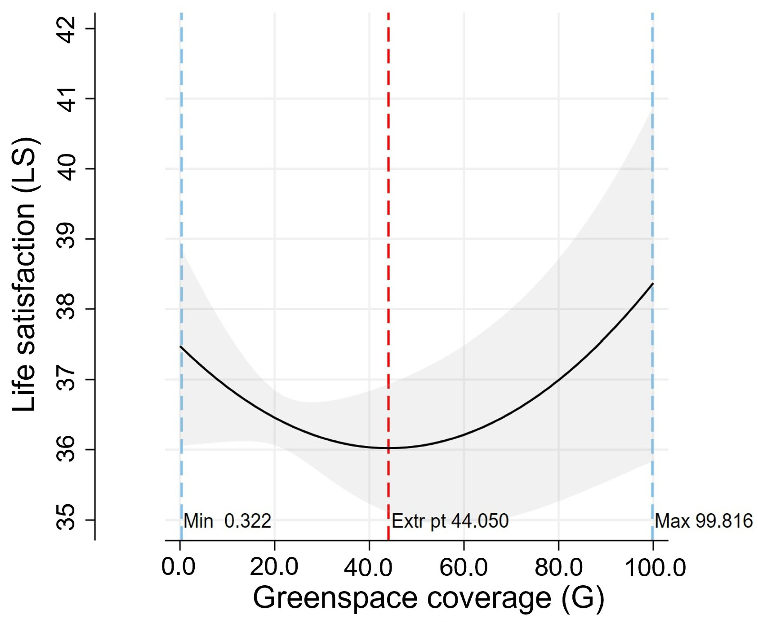 3.2. Nonlinearity Between Quantity of Greenspace and SWB