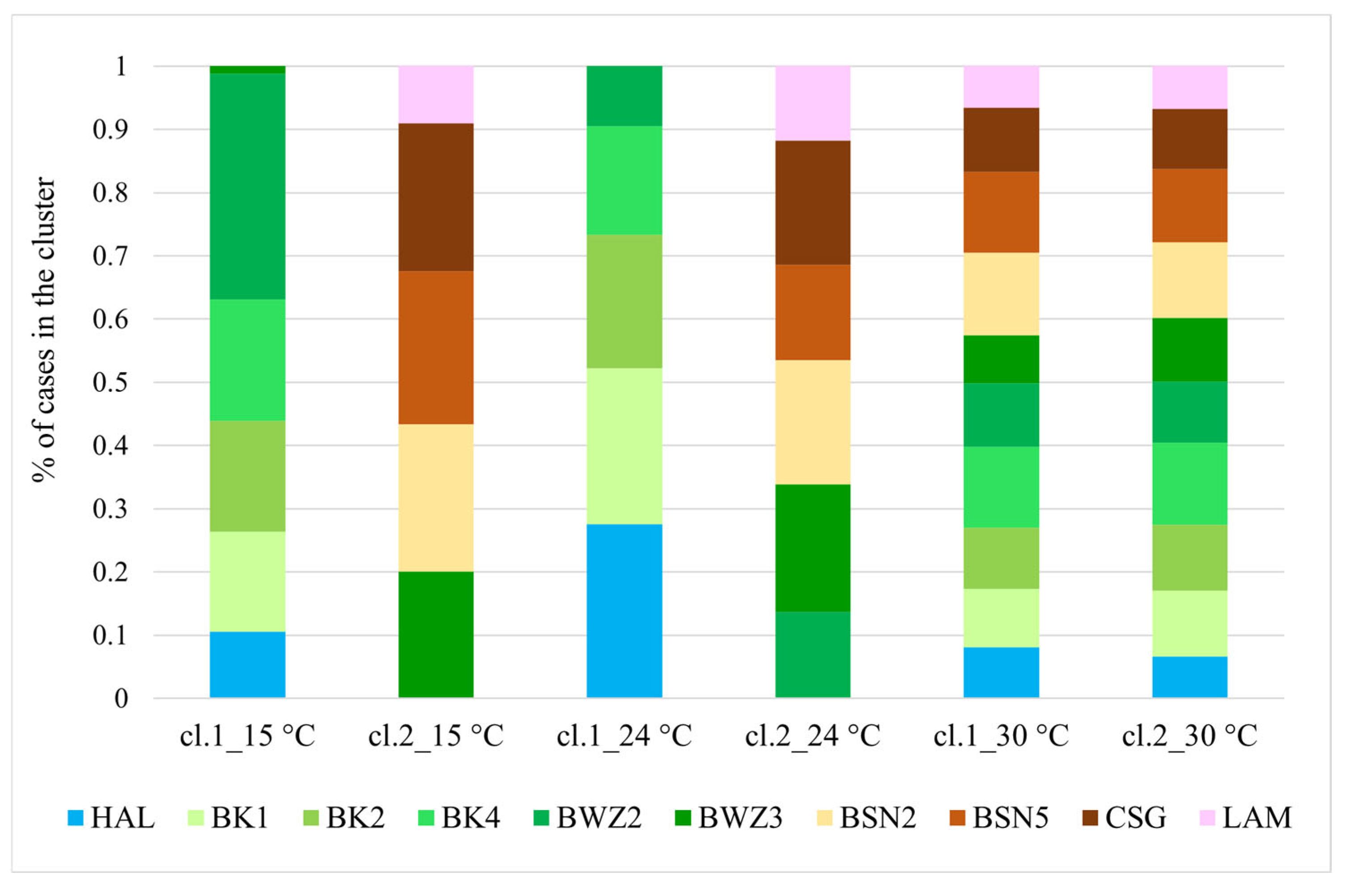 Figure 3. Example of BWZ2 strain profile obtained at 15 °C, as resulting from the cumulative factor obtained by the principal component method. Profiles were graphically represented by MS Excel 2016.