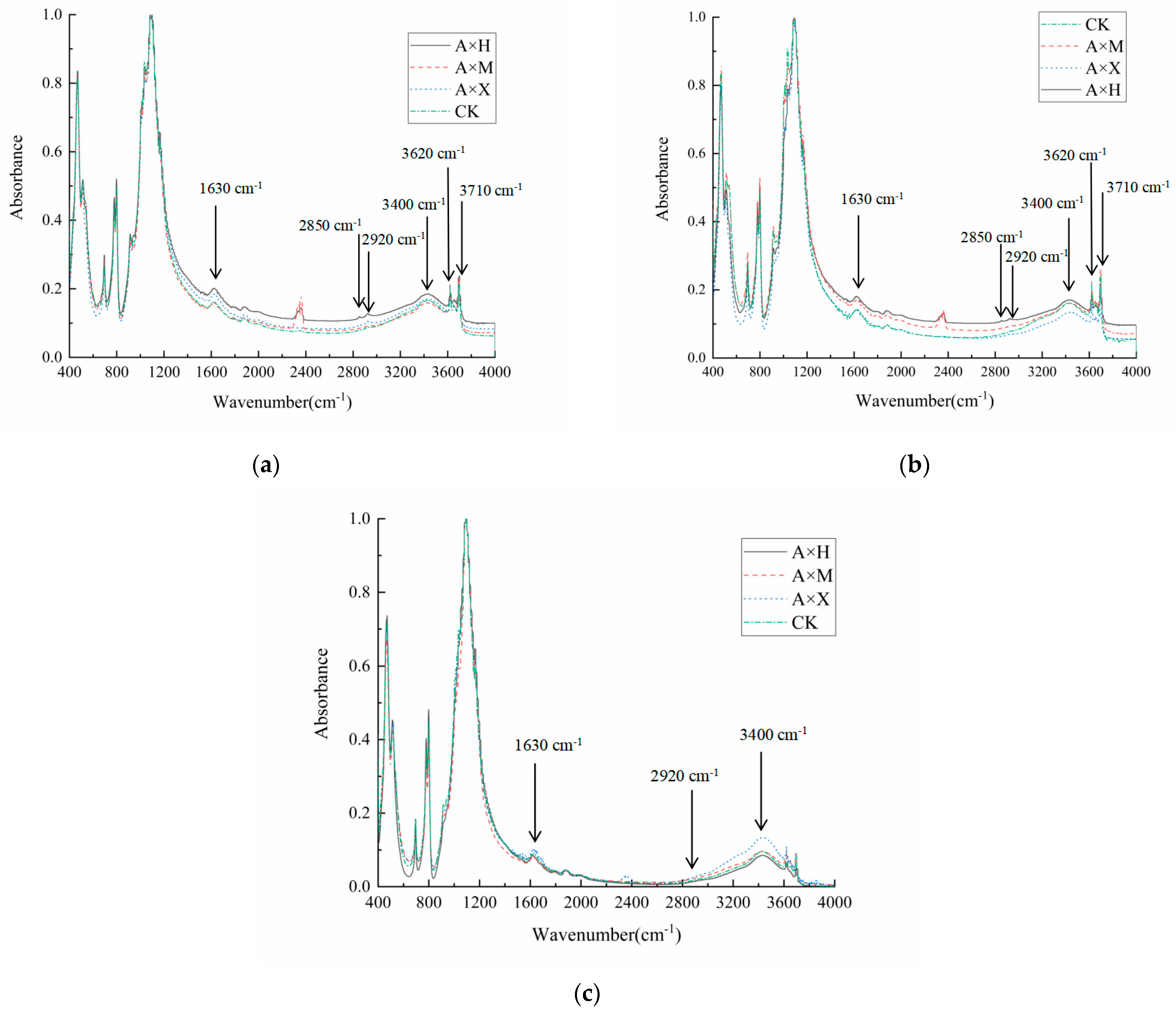 3.5. Soil Infrared Spectral Characteristics of Different Mixed Forest Types