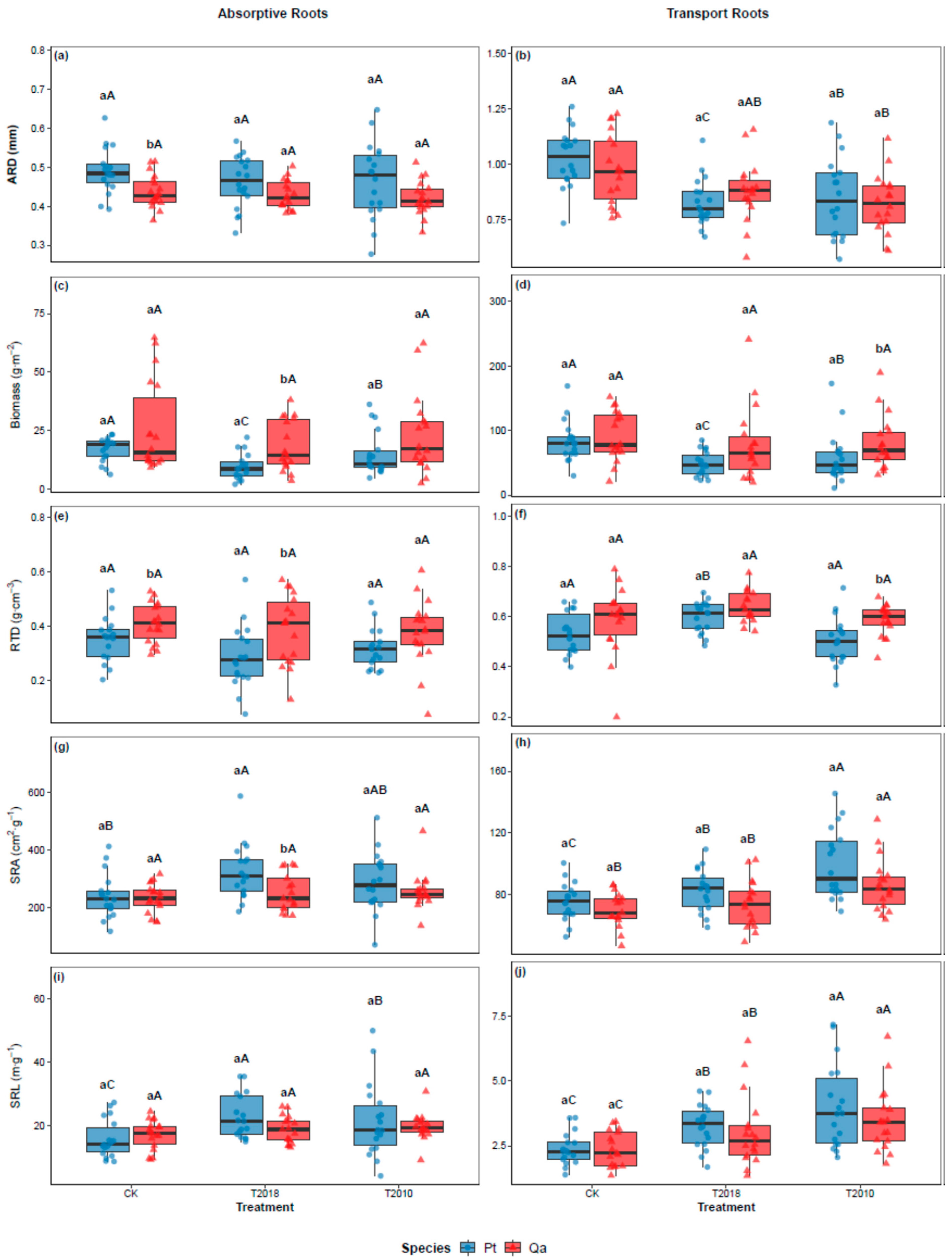 | Root Type | Root Trait | Species | Treatment | Species × Treatment |
