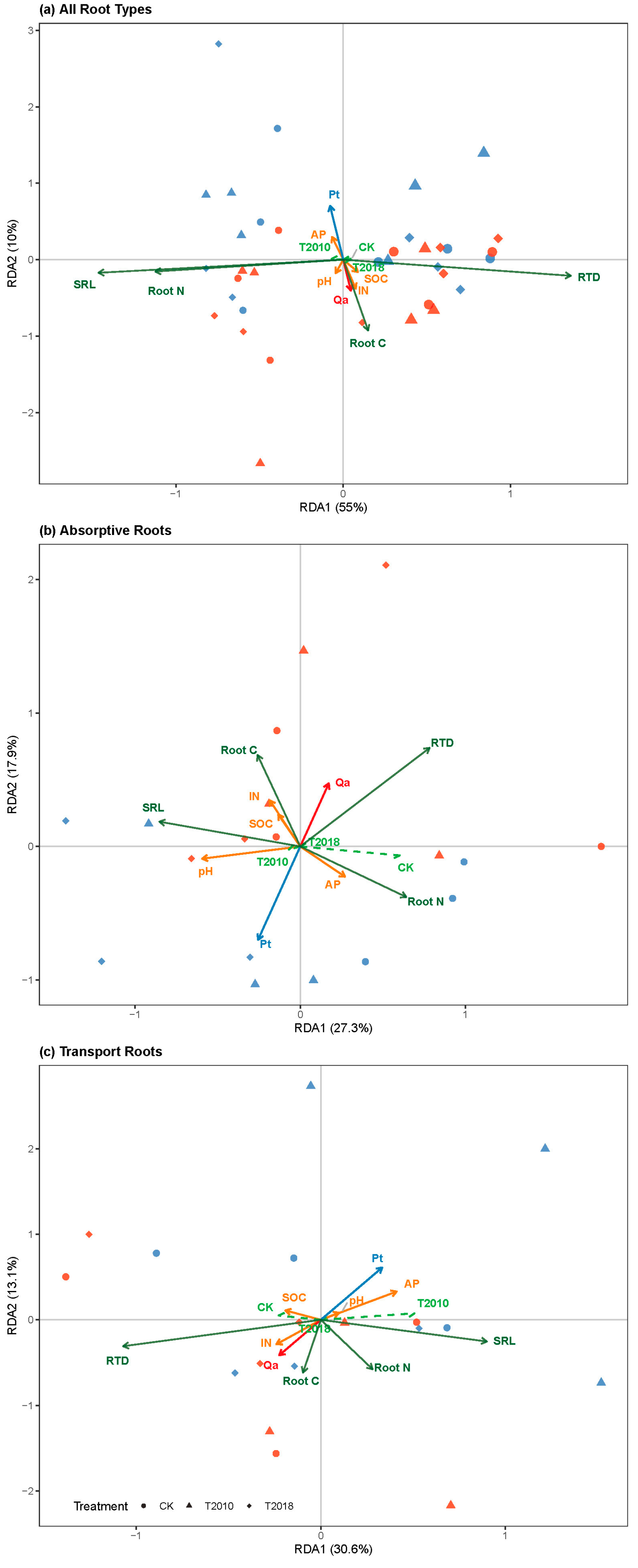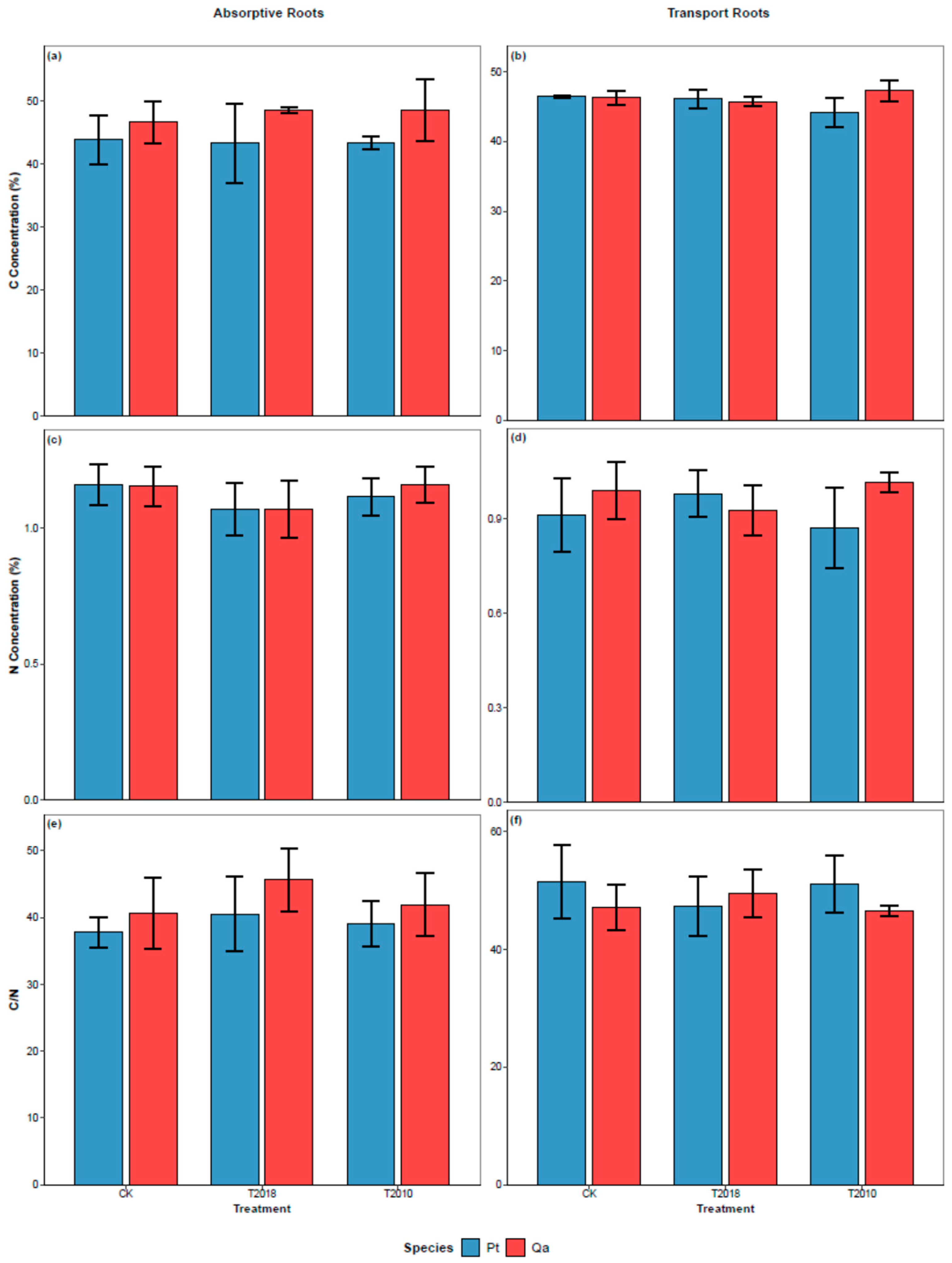 - Wang, Q.; Zhang, Z.; Zhu, X.; Liu, Z.; Li, N.; Xiao, J.; Liu, Q.; Yin, H. Absorptive roots drive a larger microbial carbon pump efficacy than transport roots in alpine coniferous forests. J. Ecol. 2022, 110, 1646–1655. [Google Scholar] [CrossRef]