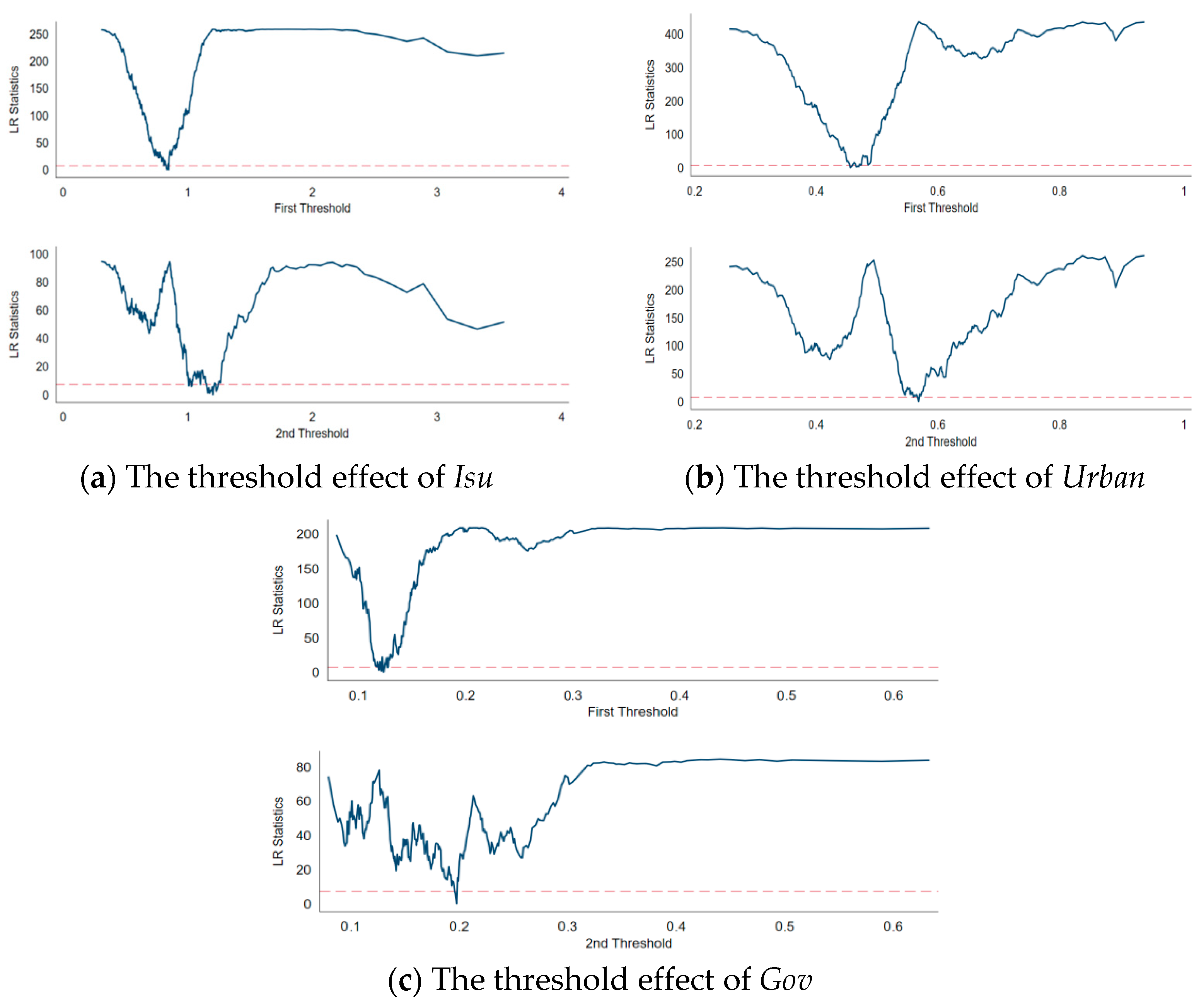 | Isu | Single-threshold | 145.7056 | 0.0518 | 397.67 | 0.000 | 11.025 | 13.017 | 16.611 |