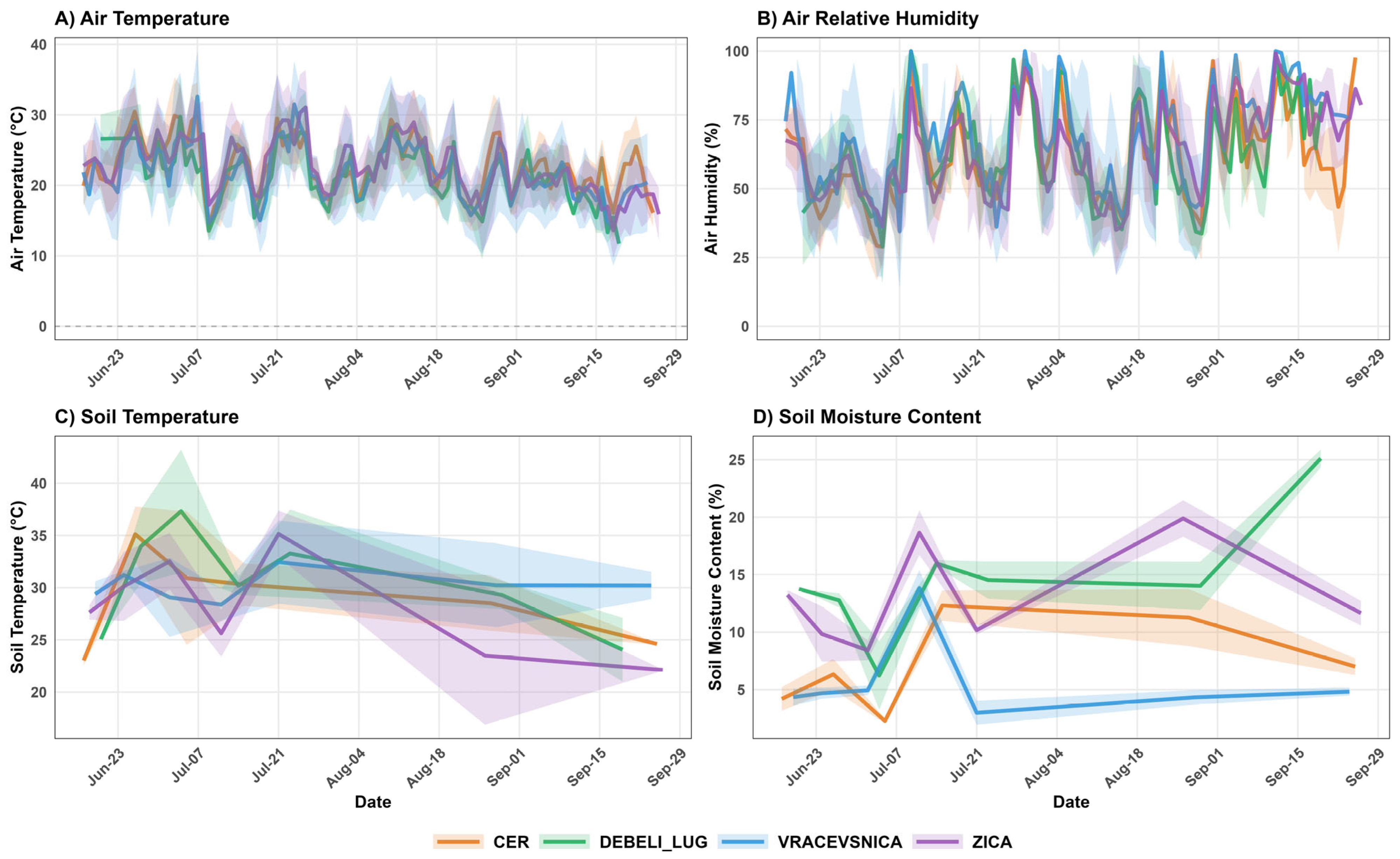 | Soil temperature | 378.6 | −1.87 | 0.063 | 257.5 | −1.29 | 0.199 | |