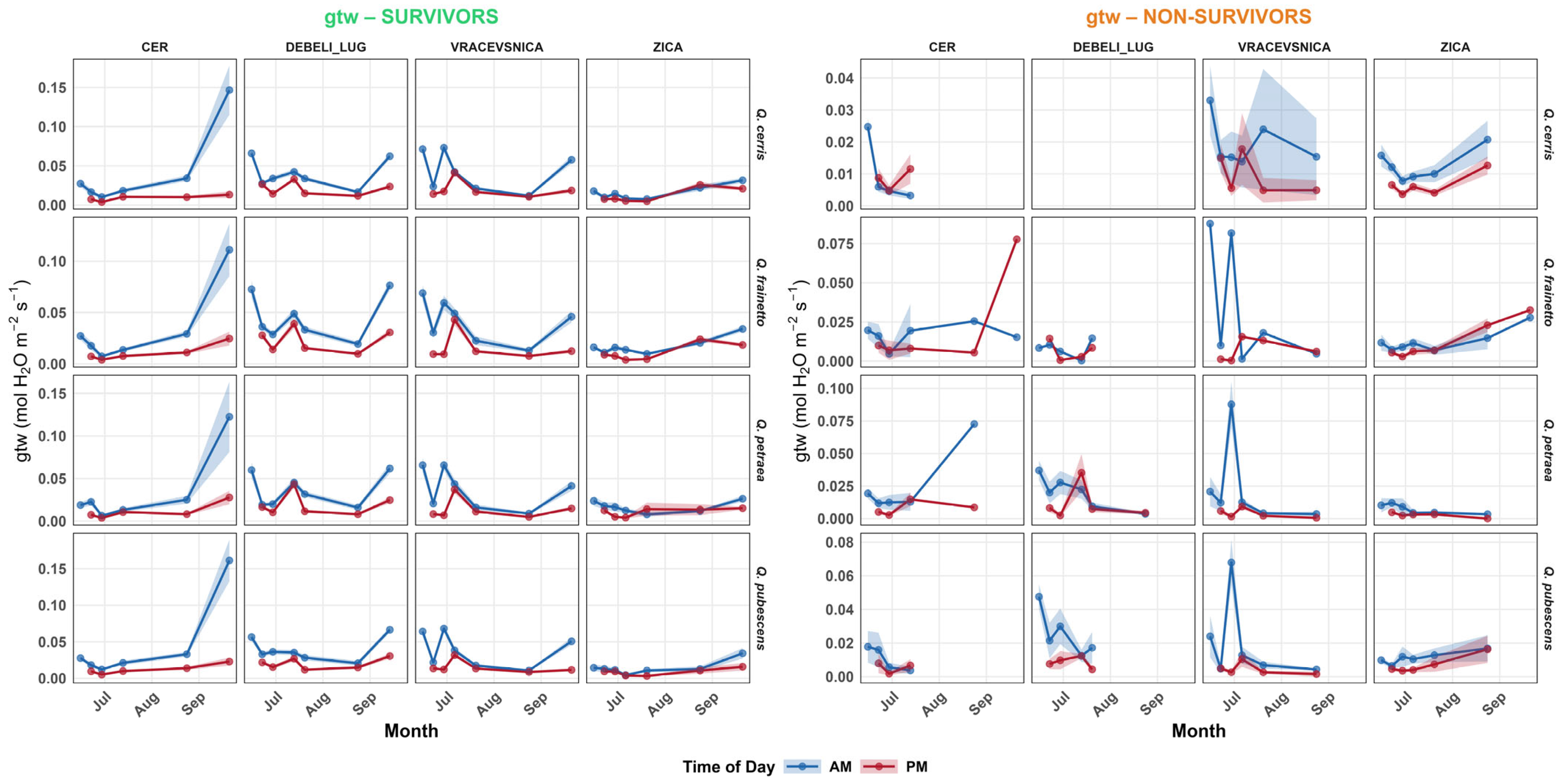 | Q. pubescens | 136.4 | 0.09 | 0.925 | 141.2 | −0.66 | 0.508 | |