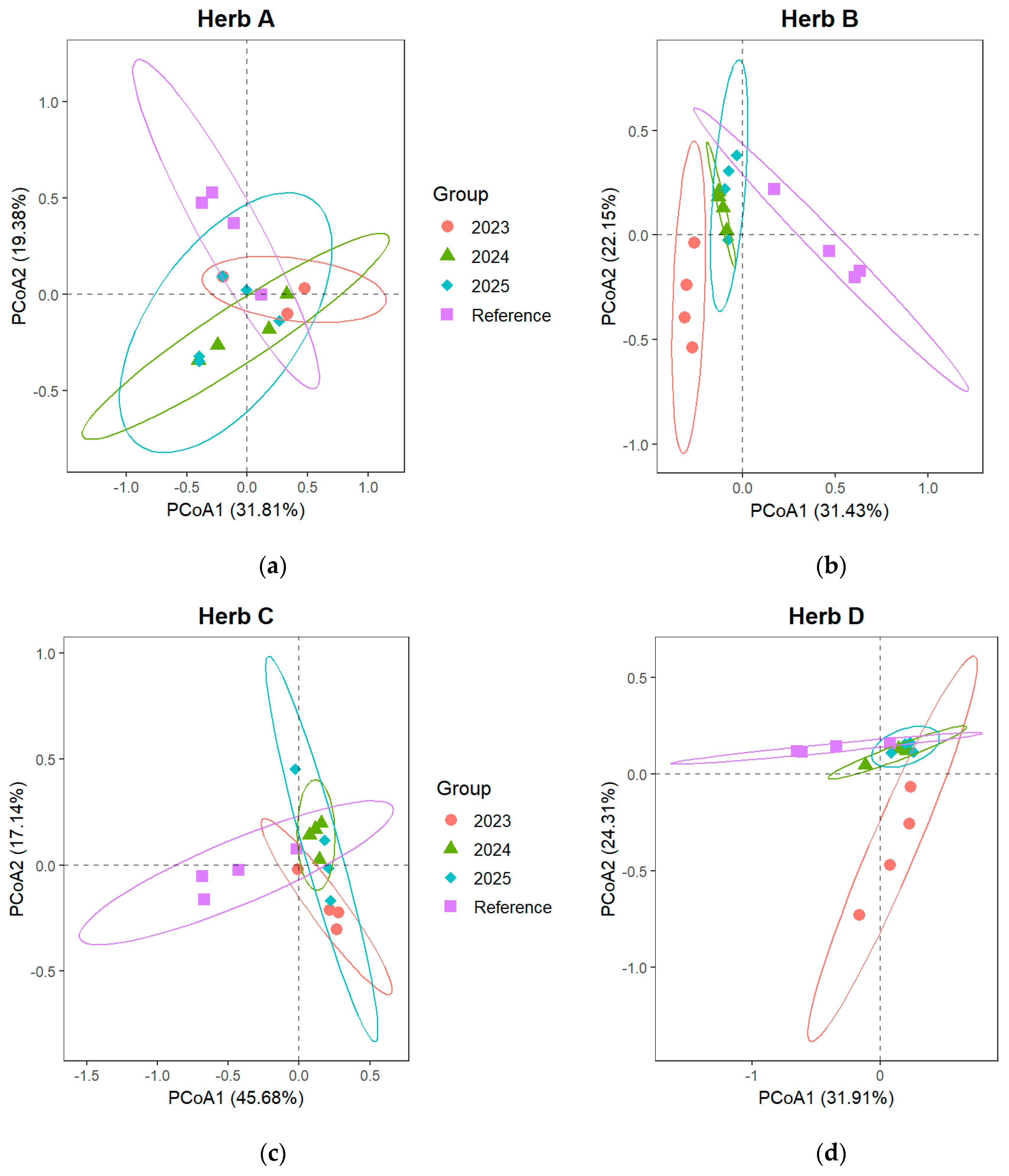 - Qiao, R.; Lv, Y.; Lv, B.; Huang, X.; Liu, Q.; Li, D.; Ma, L. Factors influencing species diversity and comparison of indices of understory vegetation in secondary forests at various development stages in the mountains of northern Hebei, China. Acta Ecol. Sin. 2025, 45, 11155–11170. [Google Scholar] [CrossRef]