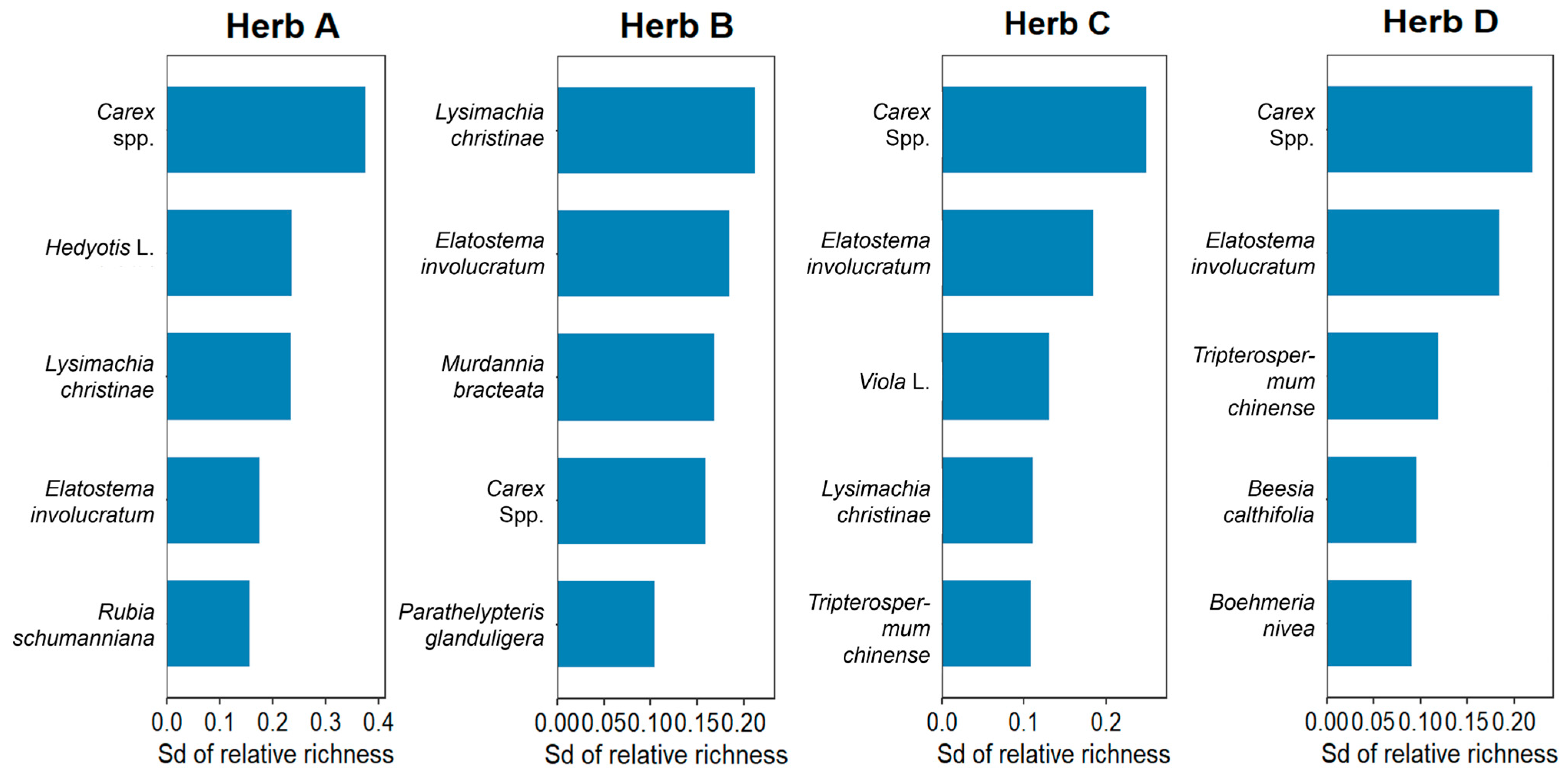 3.2.2. Changes in Community Composition of Shrub and Herb Layer
