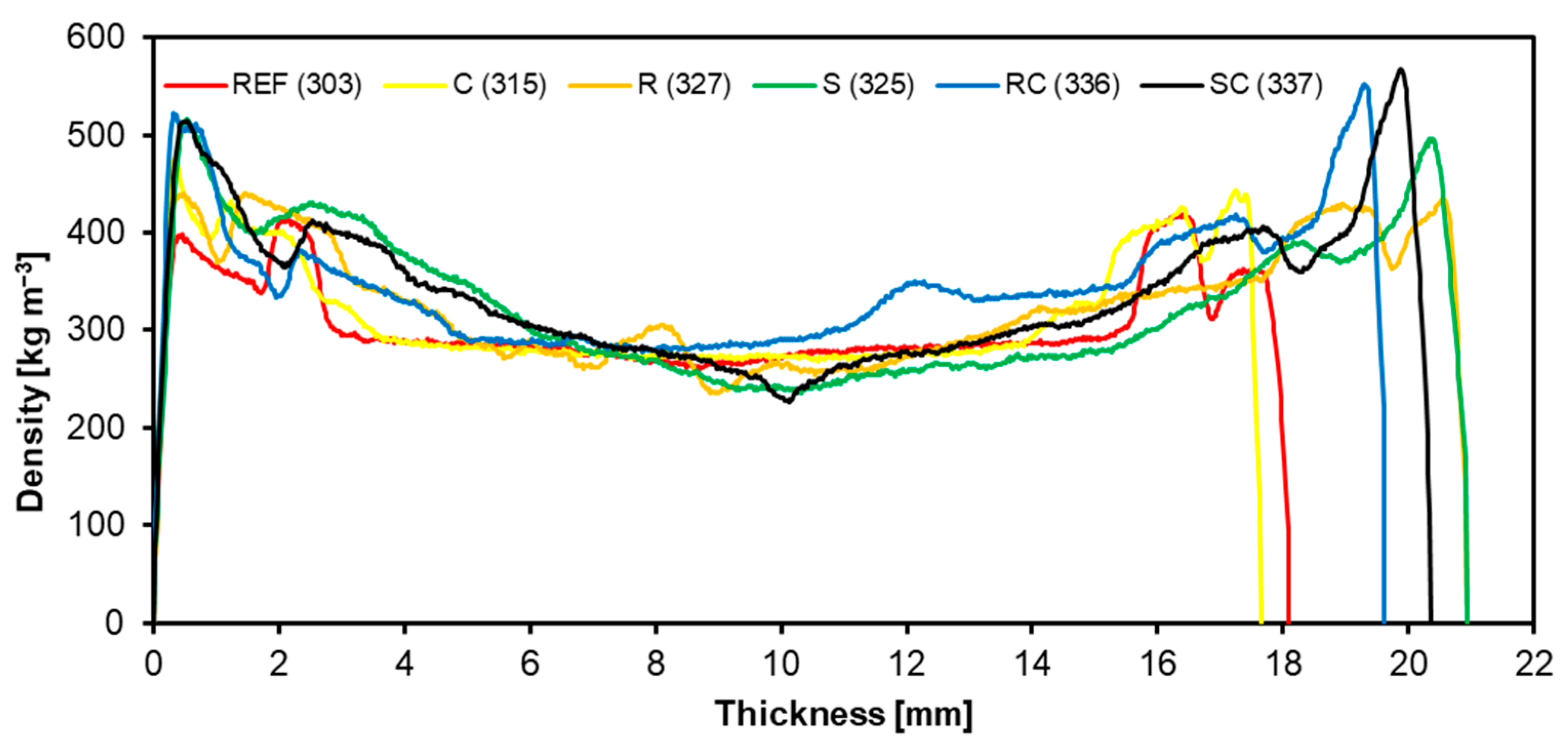 - Zhang, Y.; Yu, Z. Effects of Closure Phase on Vertical Density Profile of Fiberboard. Adv. Mater. Res. 2011, 163–167, 2770–2775. [Google Scholar] [CrossRef]