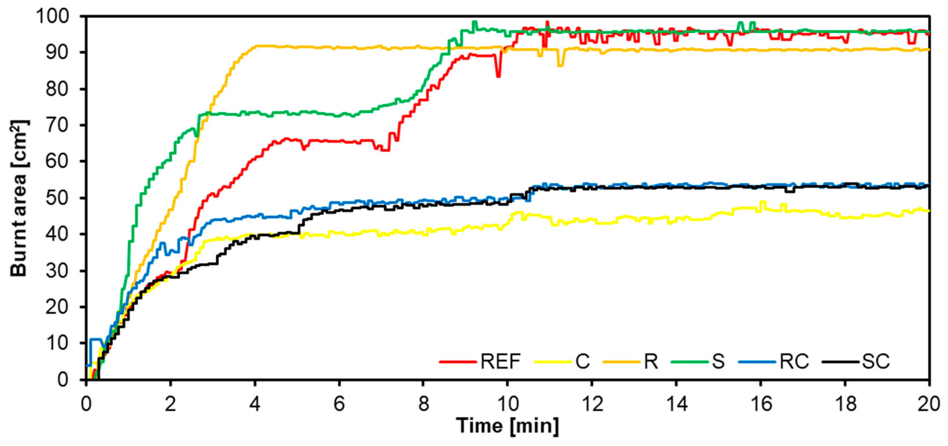 - EN ISO 11925-2; Reaction to Fire Tests—Ignitability of Products Subjected to Direct Impingement of Flame—Part 2: Single-Flame Source Test. International Organization for Standardization: Geneva, Switzerland, 2020.