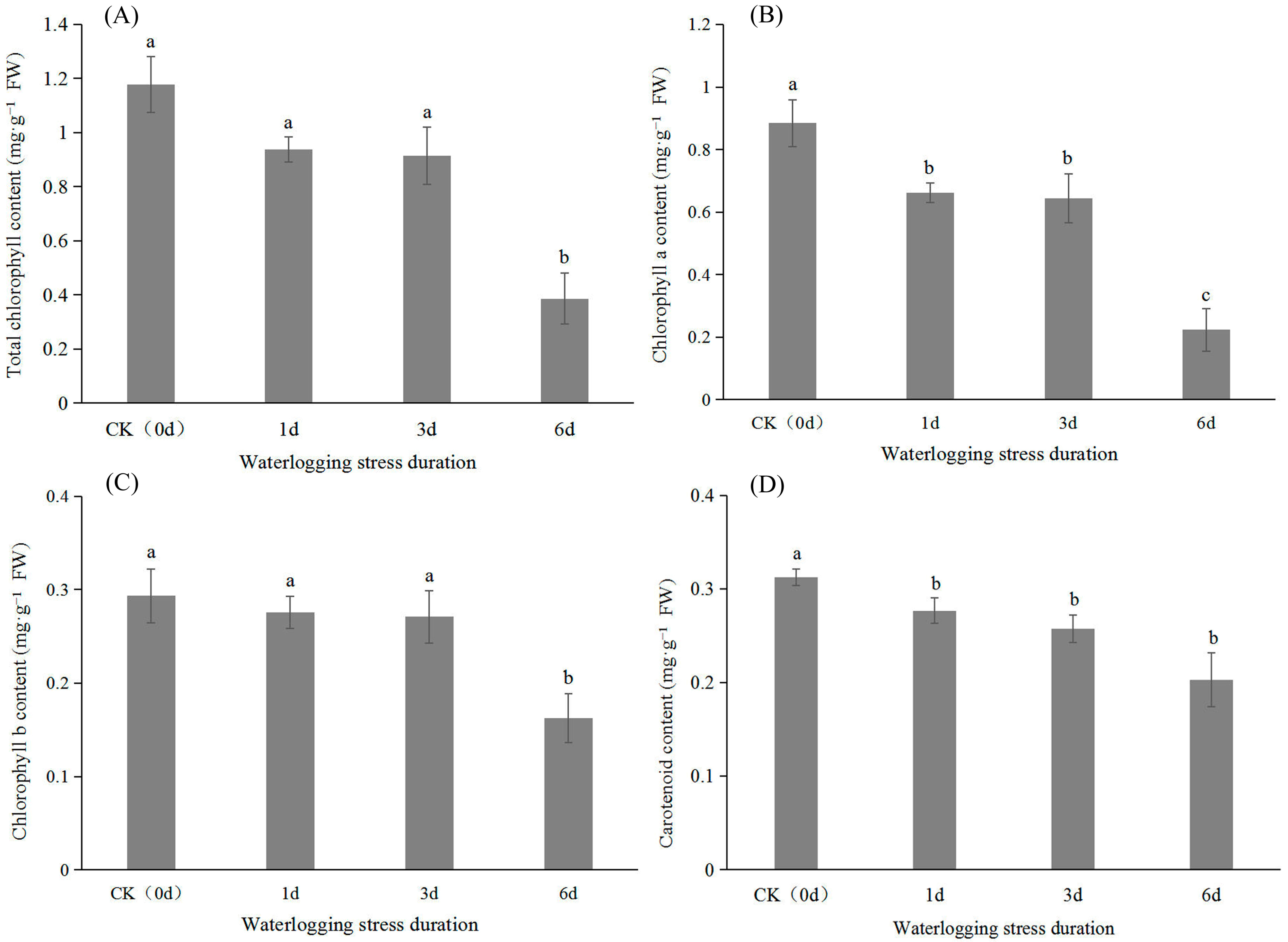 3.2. Effects of Waterlogging Stress on Photosynthesis (Chlorophyll Content)