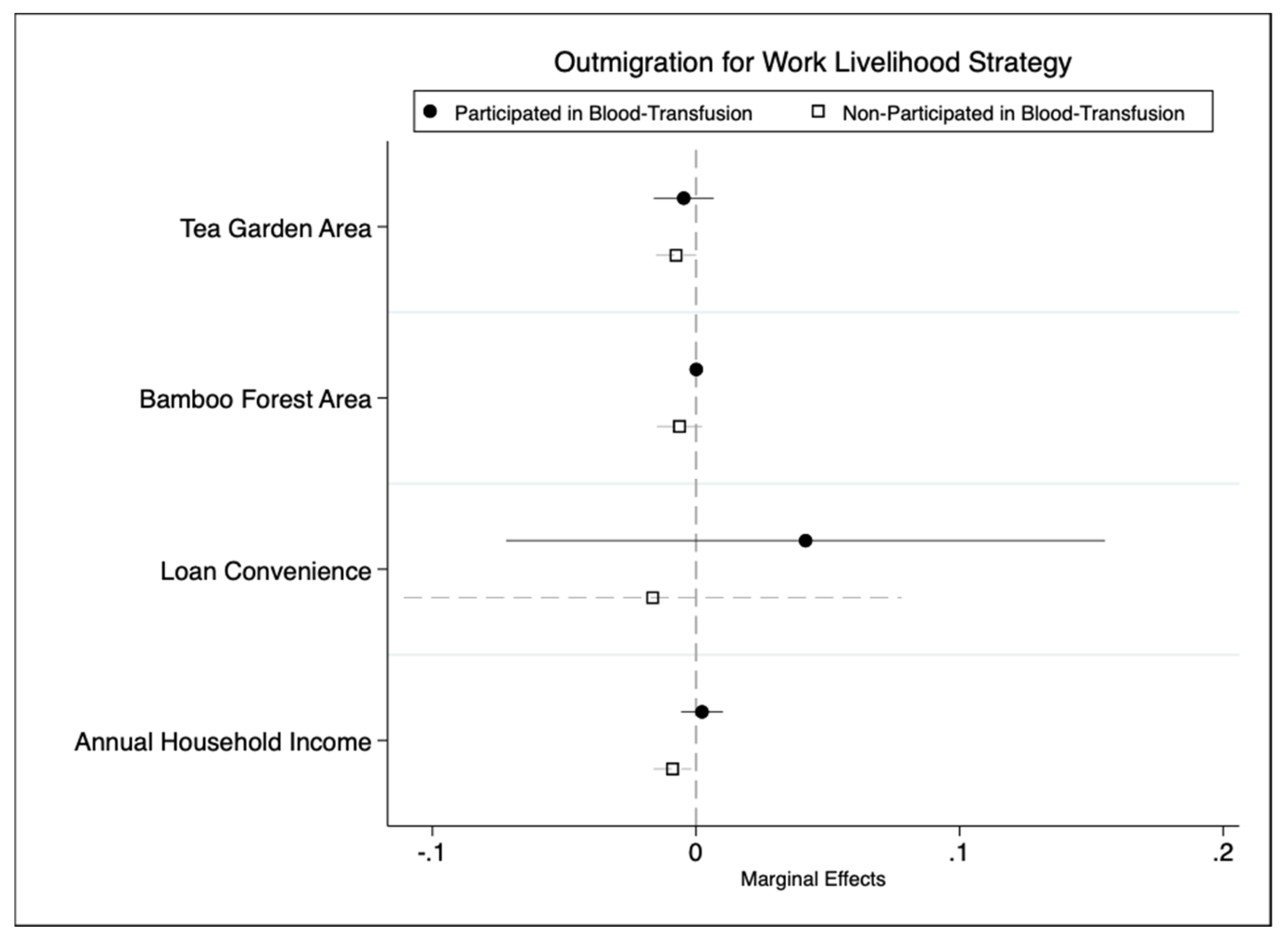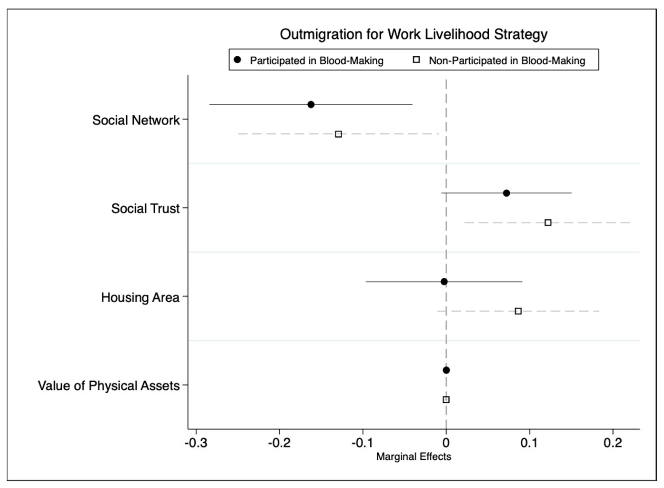 H3a“Blood-making” FECPs will weaken the positive driving effect of social capital on the out-migration for work strategy.Partially Supported