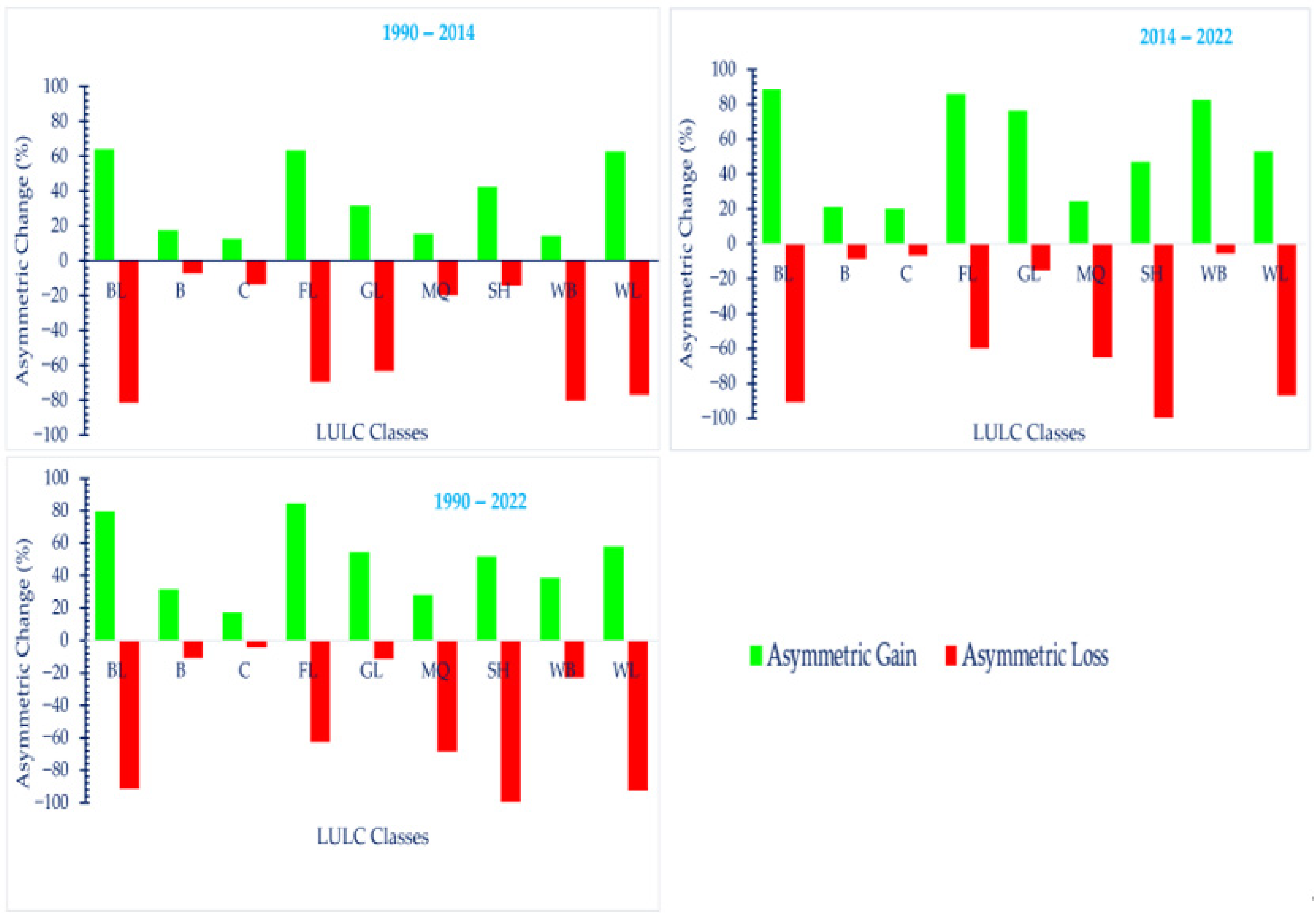 3.1.2. Asymmetric Trajectories of Forest Gain and Loss