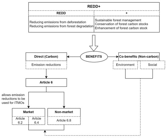 Relationship between REDD+ activities and Article 6 of the Paris Agreement.
