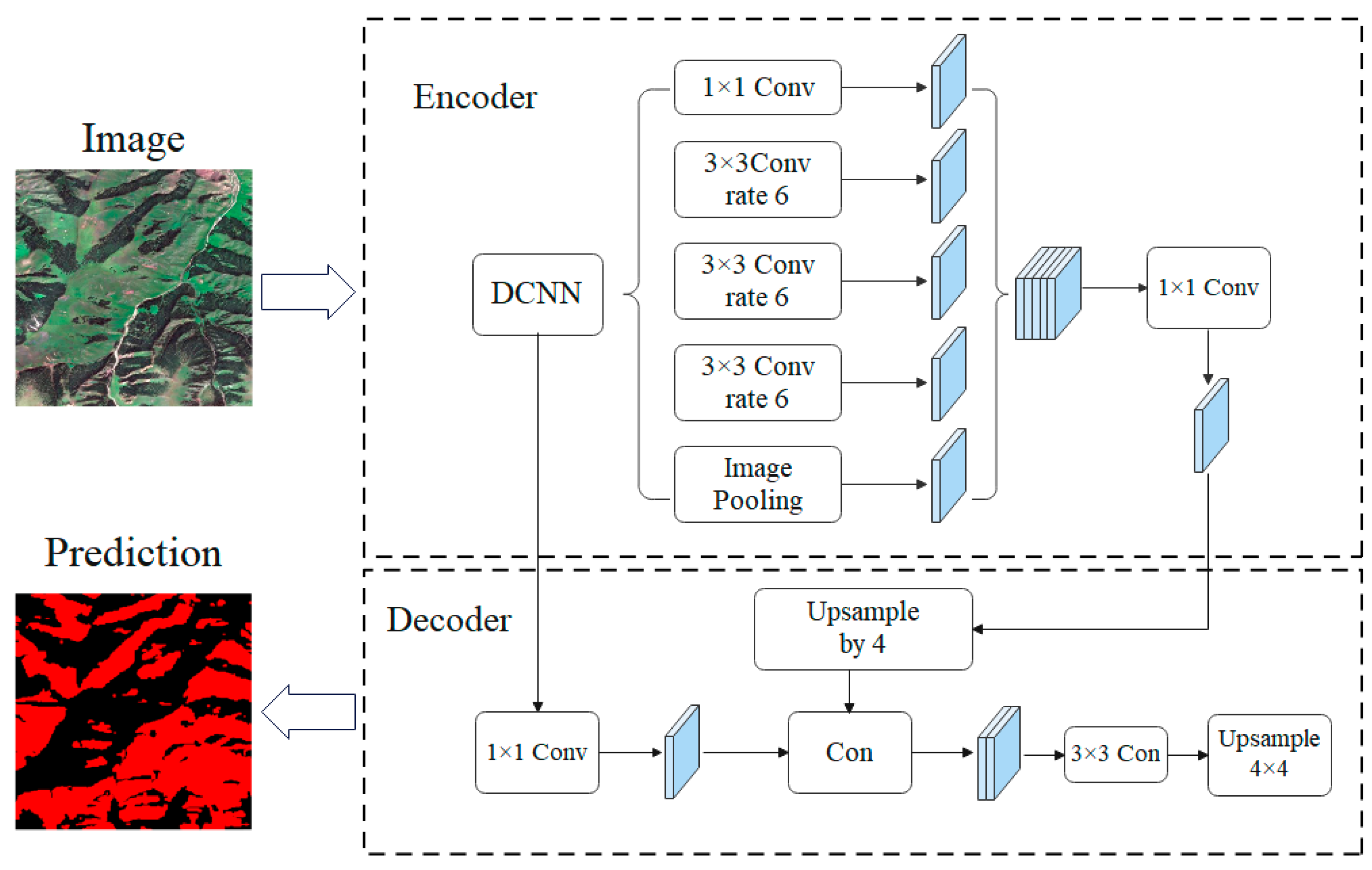 12]. In recent years, with the rapid application of deep learning technologies in remote sensing, deep learning-based forest extraction methods have emerged as a research hotspot. In comparison with conventional methodologies, deep learning models have the capacity to automatically learn complex nonlinear features of vegetation across multiple levels, including texture, shape and context. This capability is evidenced by significant advantages when processing highly heterogeneous landscapes [