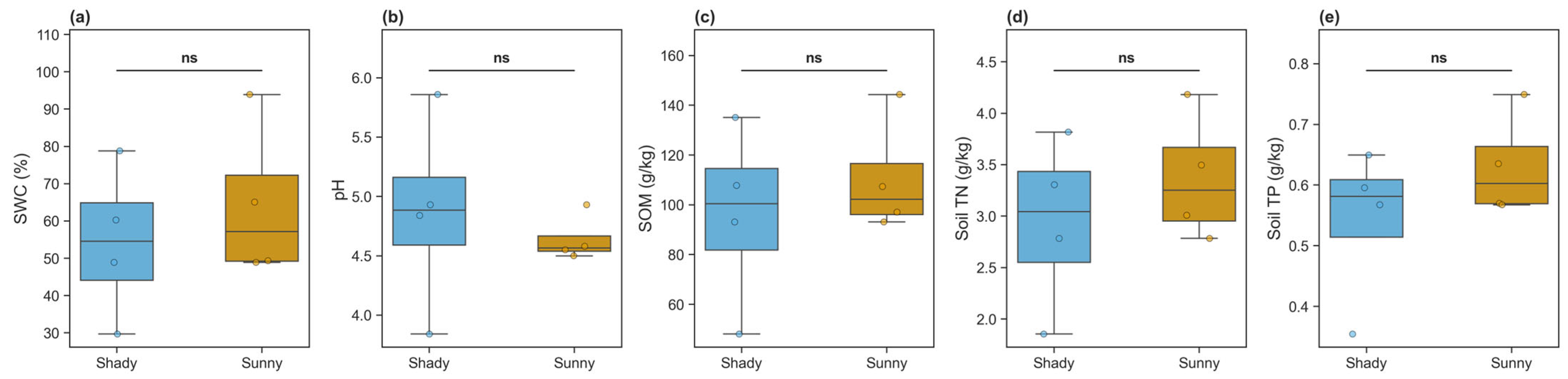 | Variable | Sunny Slope | Shady Slope | p-Value |