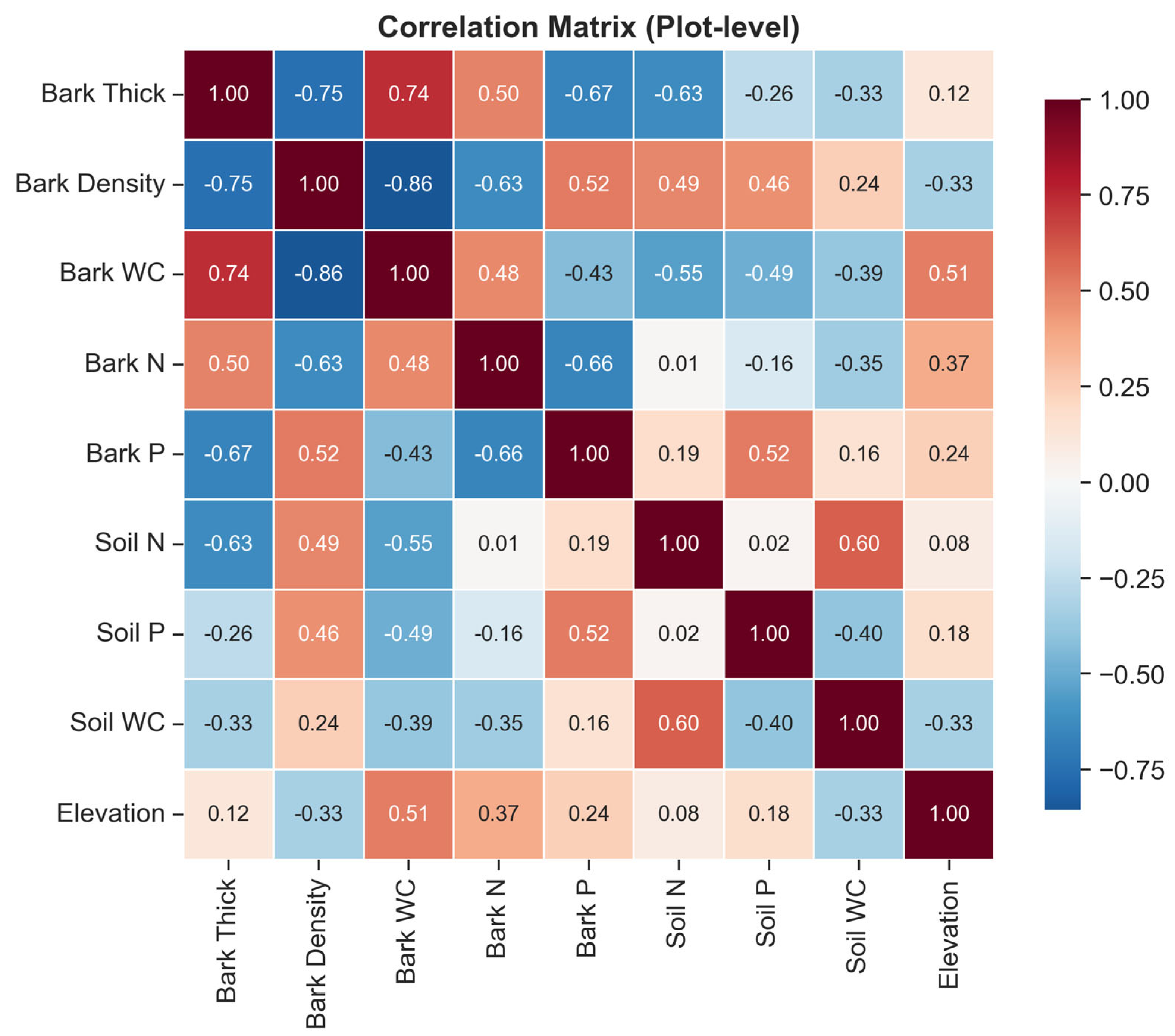 4.4. Decoupling of Soil and Bark Traits: Ecological Implications