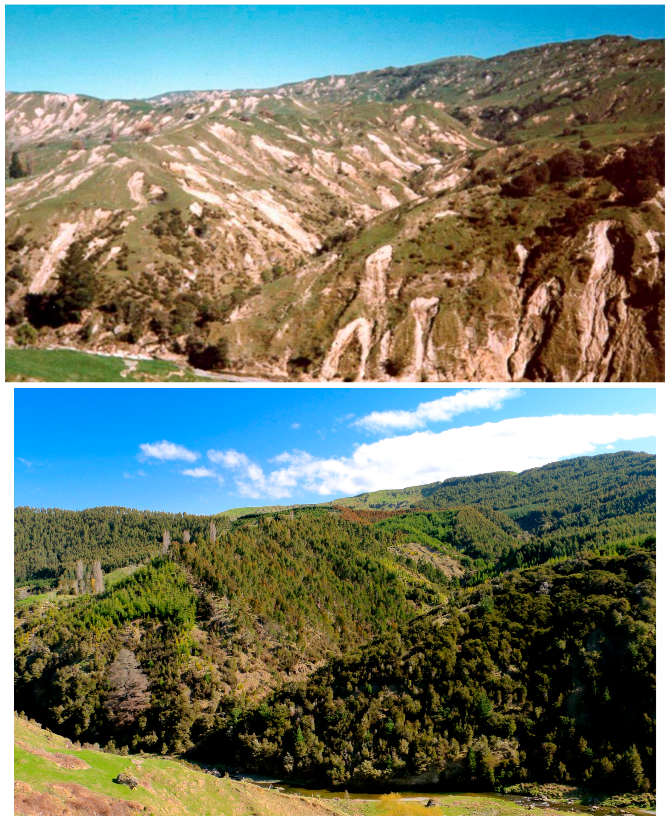 1]. In many cases, these steepland plantations were deliberately established to control soil erosion that followed the large-scale clearance of indigenous forests and their conversion to grassland for pastoral farming. This strategy has proved successful (