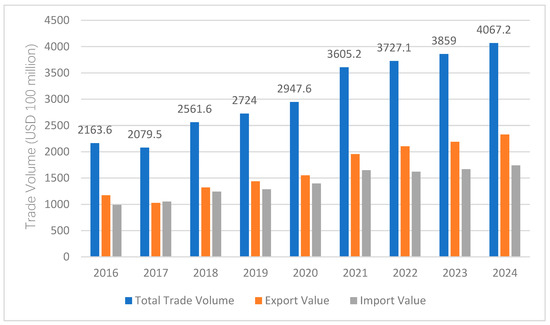The scale of China’s digitally deliverable services trade (2016–2024). Data source: Figure is drawn by the authors. Data is from the Ministry of Commerce of the People’s Republic of China.