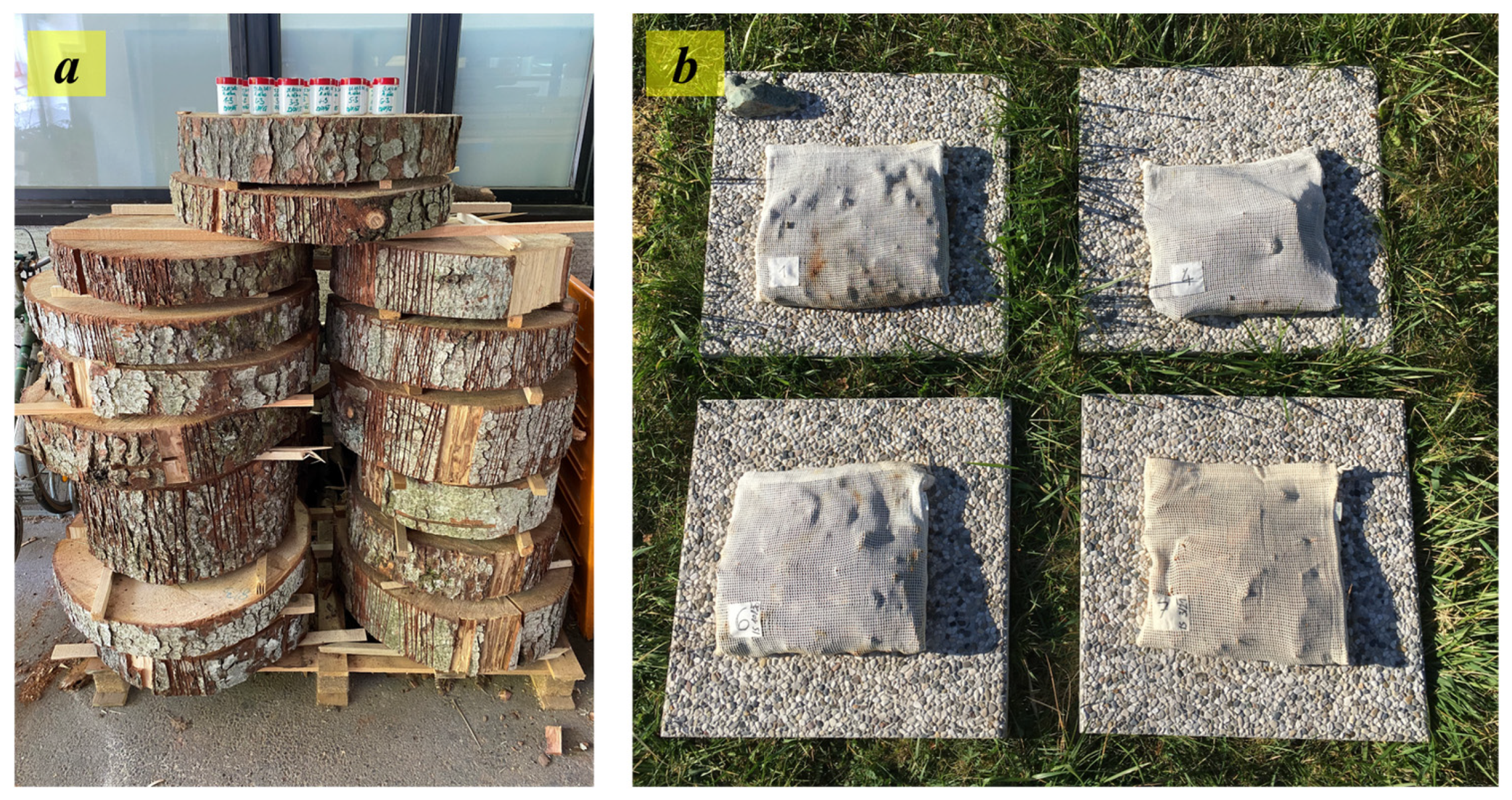 - Fernandez-Costas, C.; Palanti, S.; Charpentier, J.P.; Sanroman, M.A.; Moldes, D. A sustainable treatment for wood preservation: Enzymatic grafting of wood extractives. ACS Sustain. Chem. Eng. 2017, 5, 7557–7567. [Google Scholar] [CrossRef]