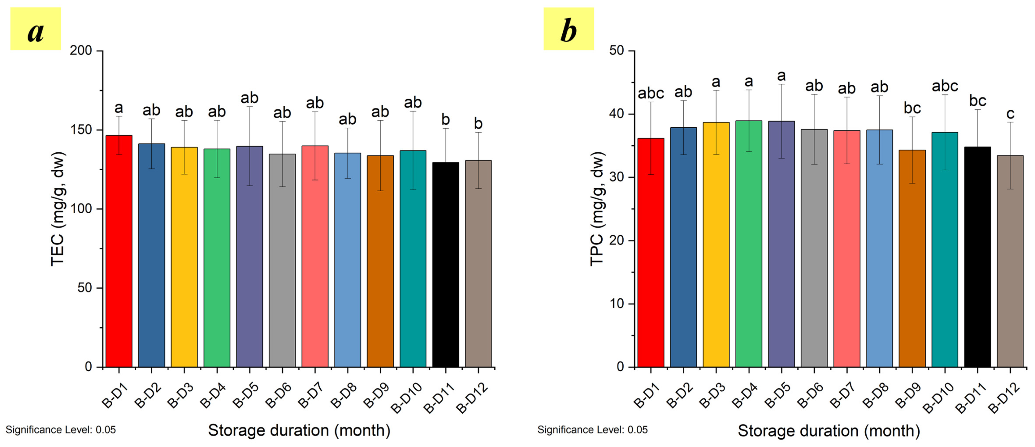3.4. Effect of Storage on Total Hydrophilic Extractives and Polyphenol Content in Silver Fir Bark