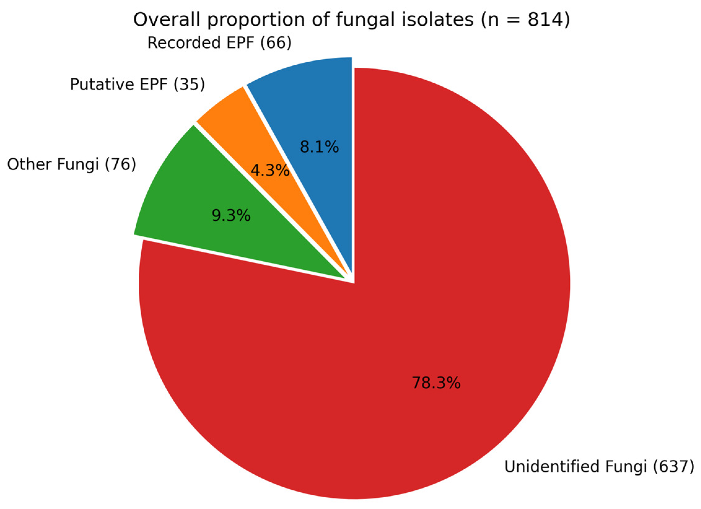 2.2. Insect Baiting and Fungal Isolation
