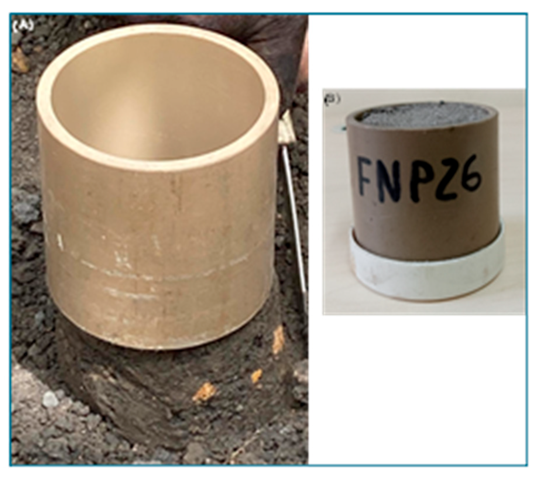 - Blake, G.R.; Hartge, K.H. Bulk density. In Methods of Soil Analysis, Part 1—Physical and Mineralogical Methods, 2nd ed.; Klute, A., Ed.; Agronomy Monograph 9; American Society of Agronomy, Soil Science Society of America: Madison, WI, USA, 1986; pp. 363–382. [Google Scholar]
