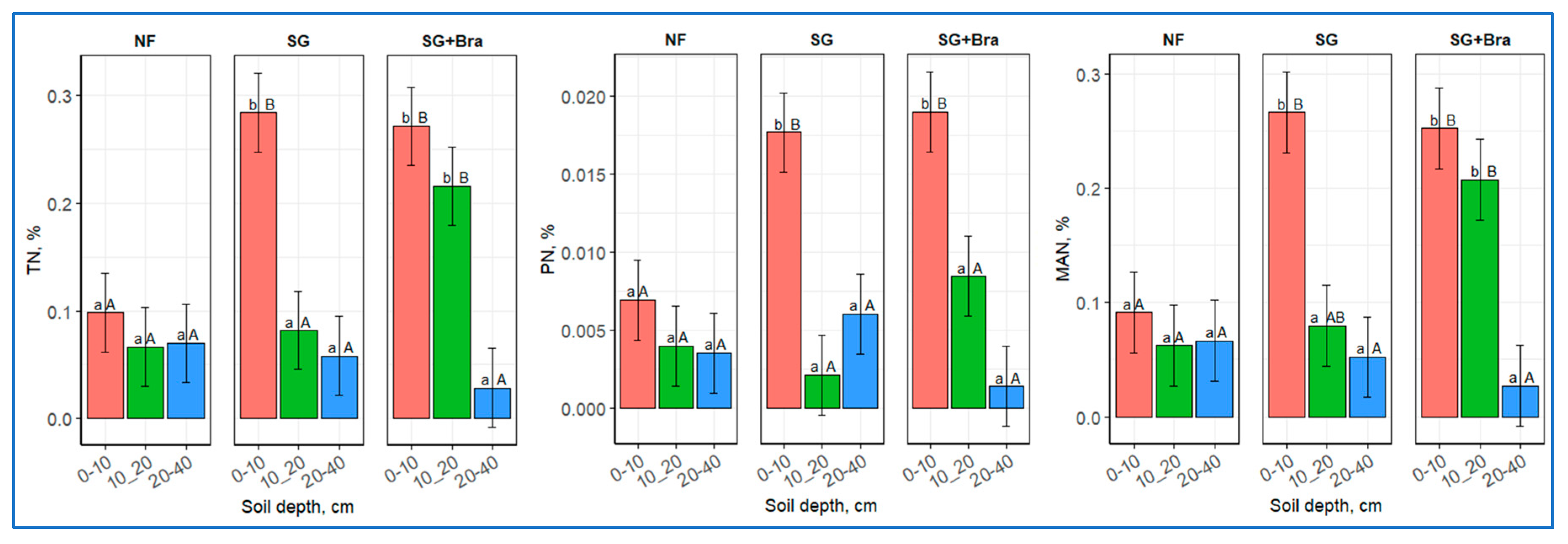 | SG + Bra | 0.113 abAB | 0.143 bB | 0.027 aA | ||
