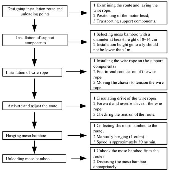 Working process of the cable-type moso bamboo transportation equipment.